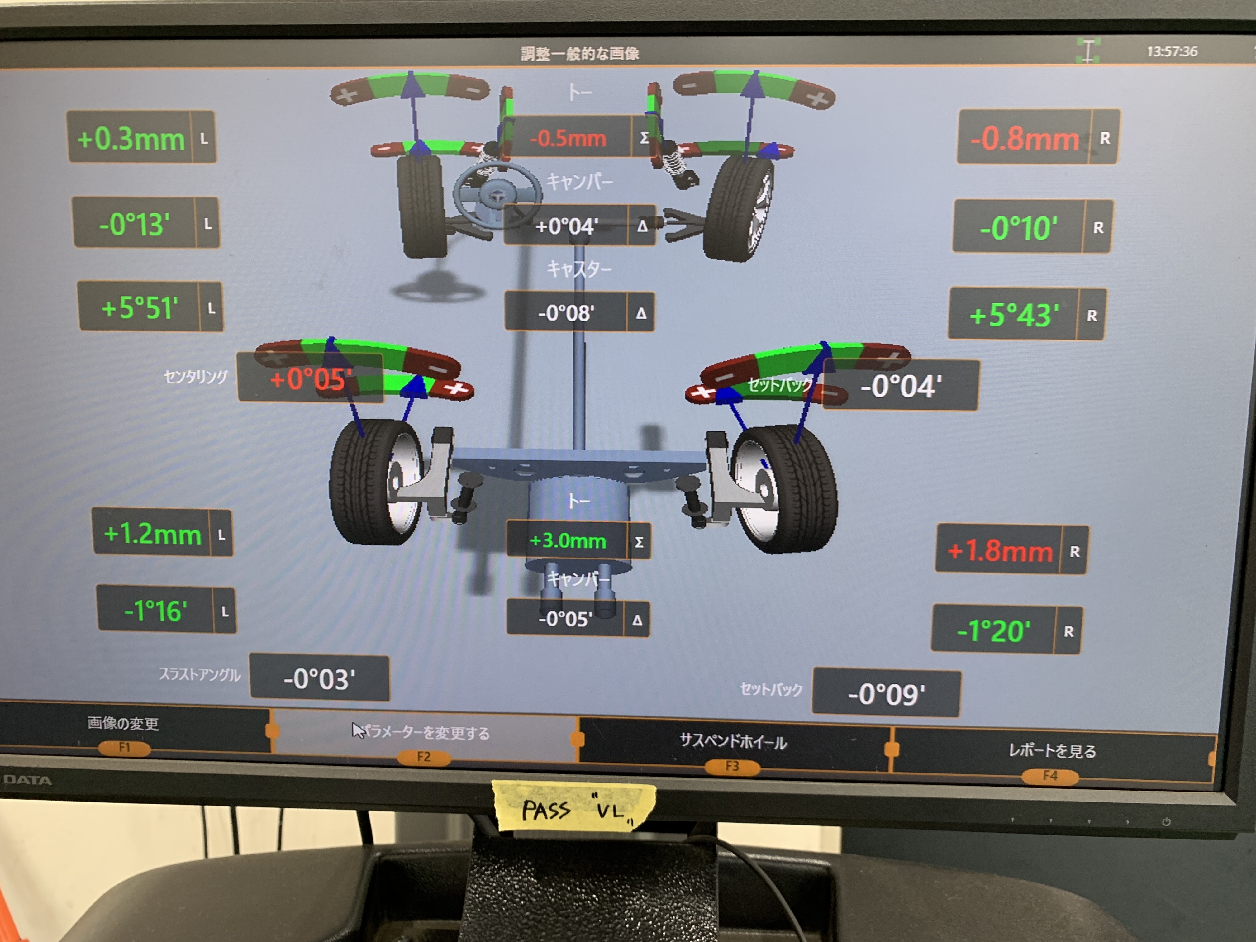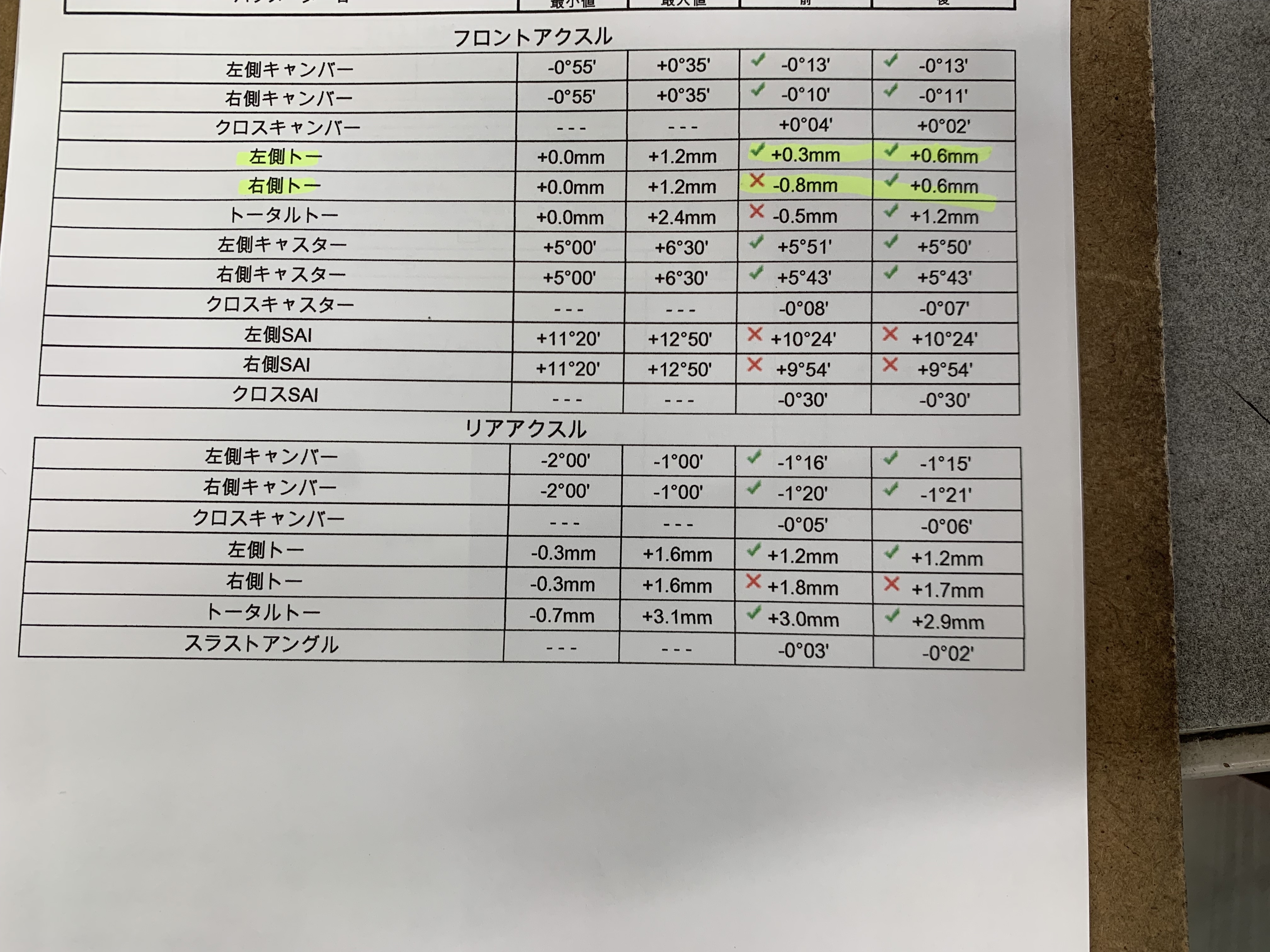 調整後は左右のトー角のバラつきは無くなりましたね!(^^)!