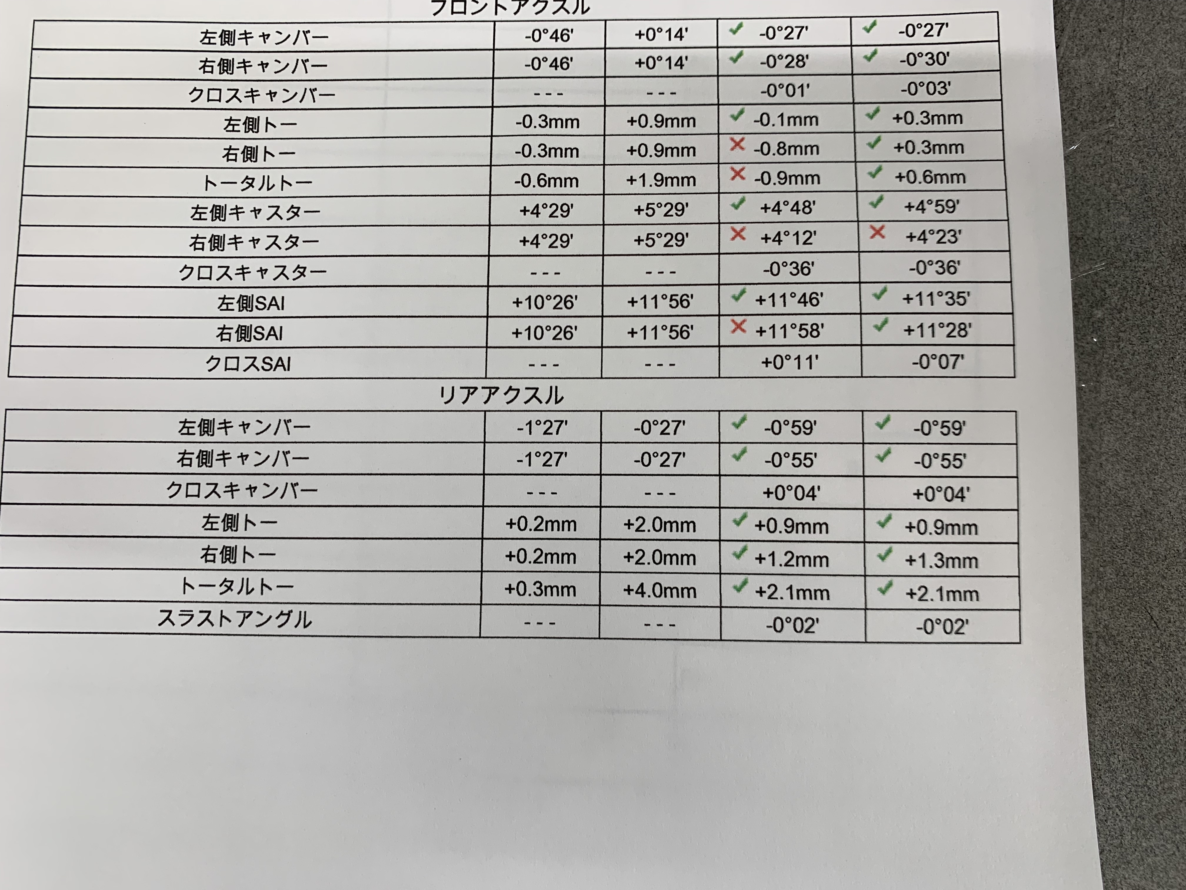 今回はタイヤの偏摩耗抑制の為、基準値で調整をさせて頂きました!