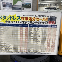 なぜなら・・・スタッドレスタイヤの金額が値上げするみたいです。。。