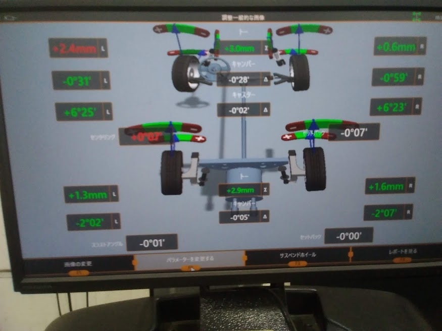 タイヤの偏摩耗抑制の為、今回は基準値で調整をさせて頂きました!