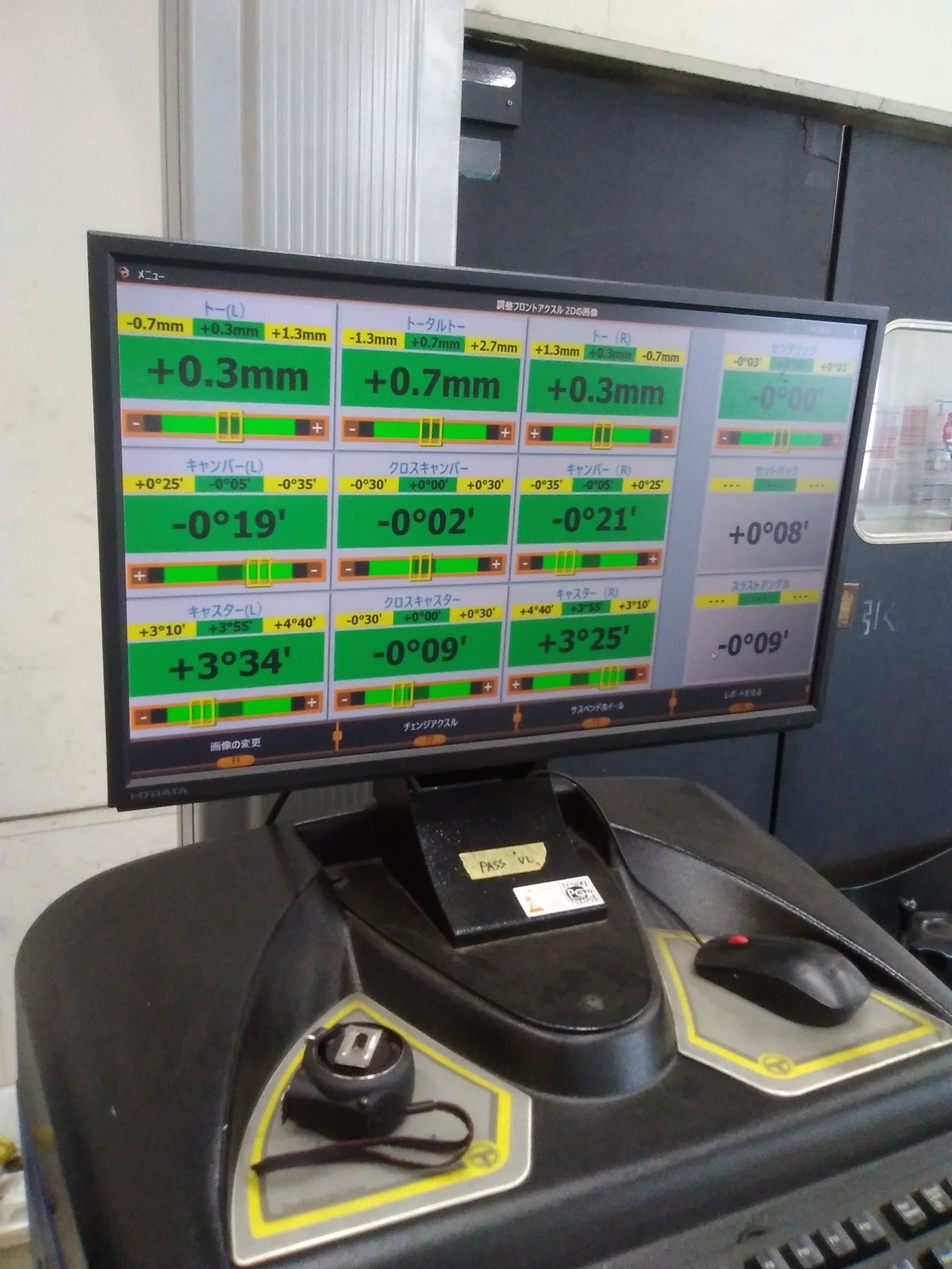 測定と調整で、ここまで作業して、軽自動車なら