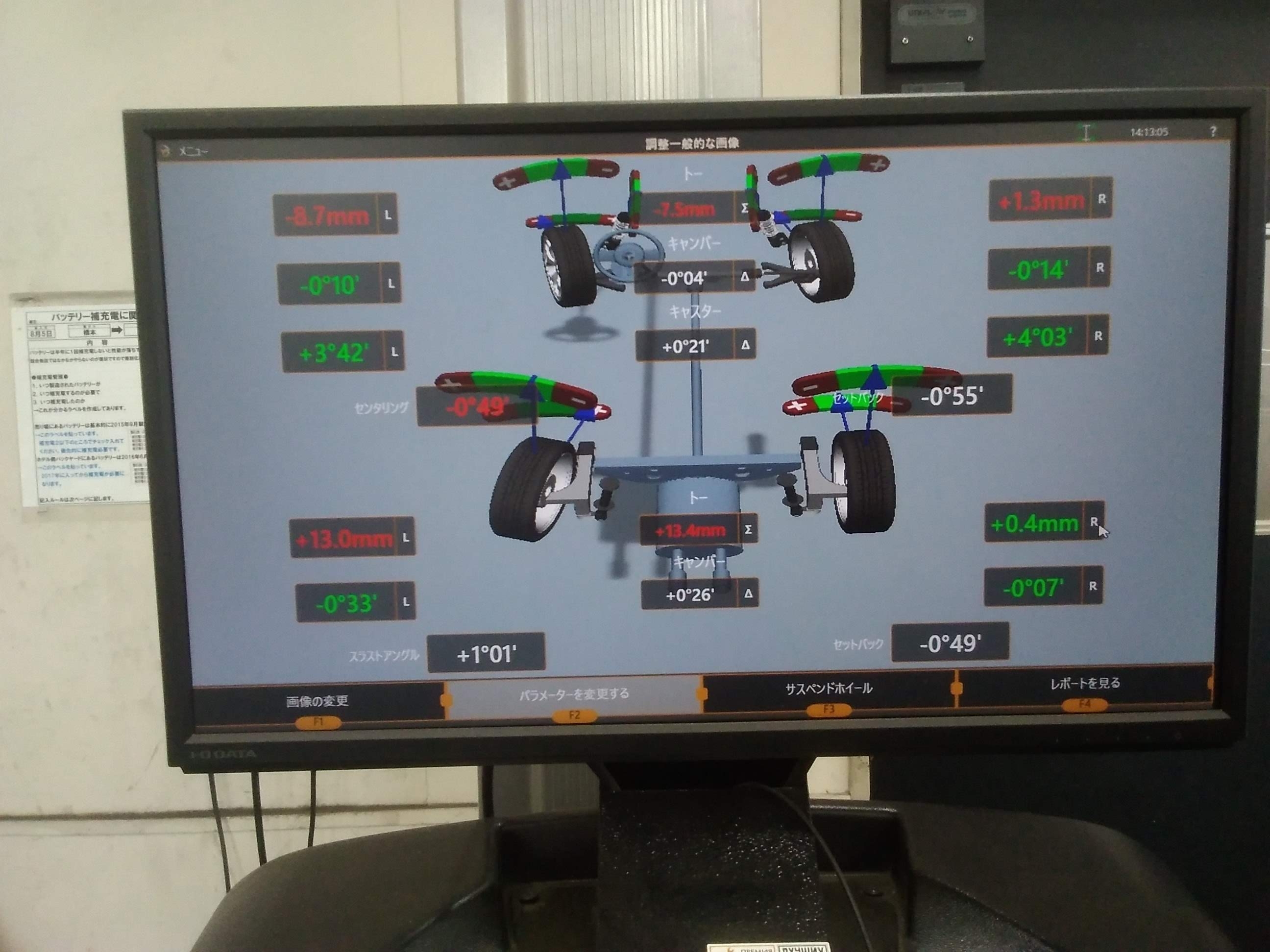 タイヤの偏摩耗も大きく、大きなズレが出ていることを物語っていました