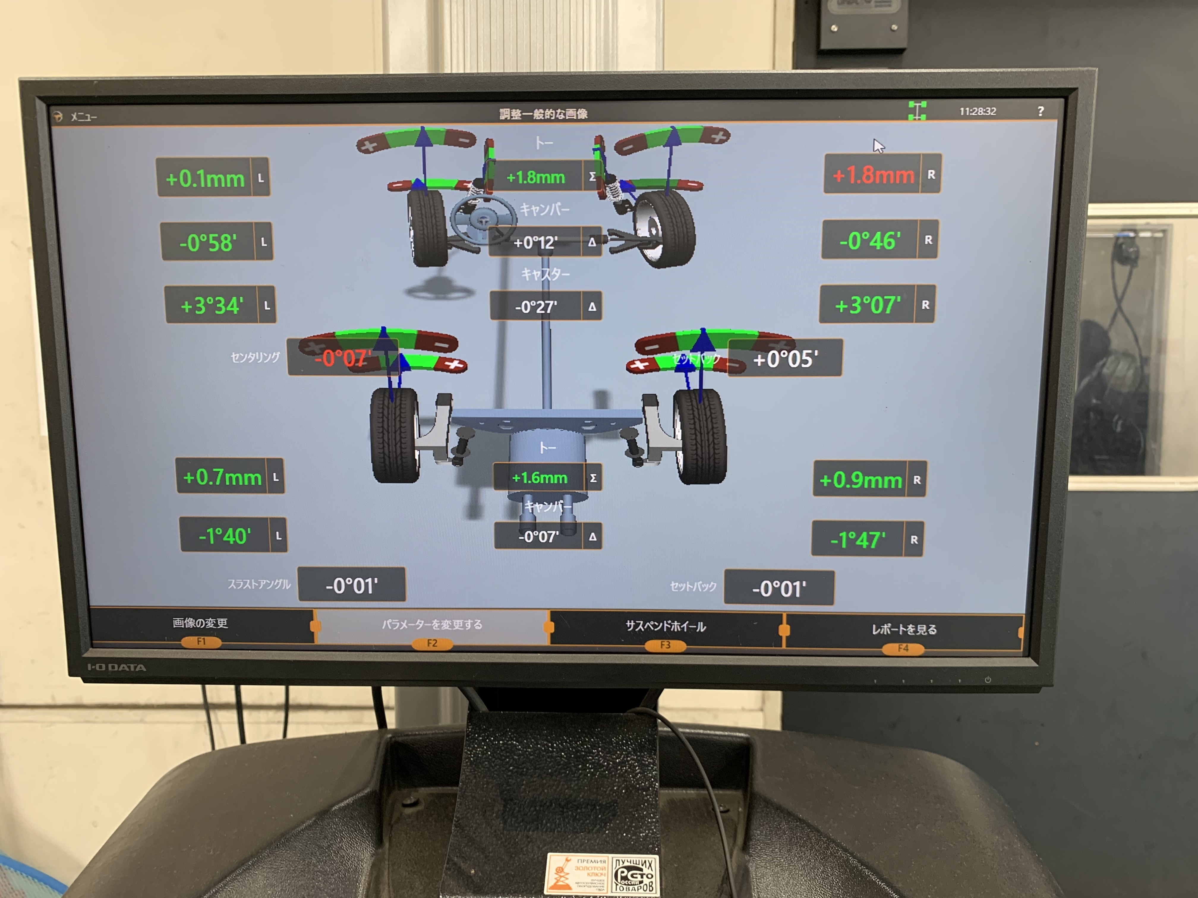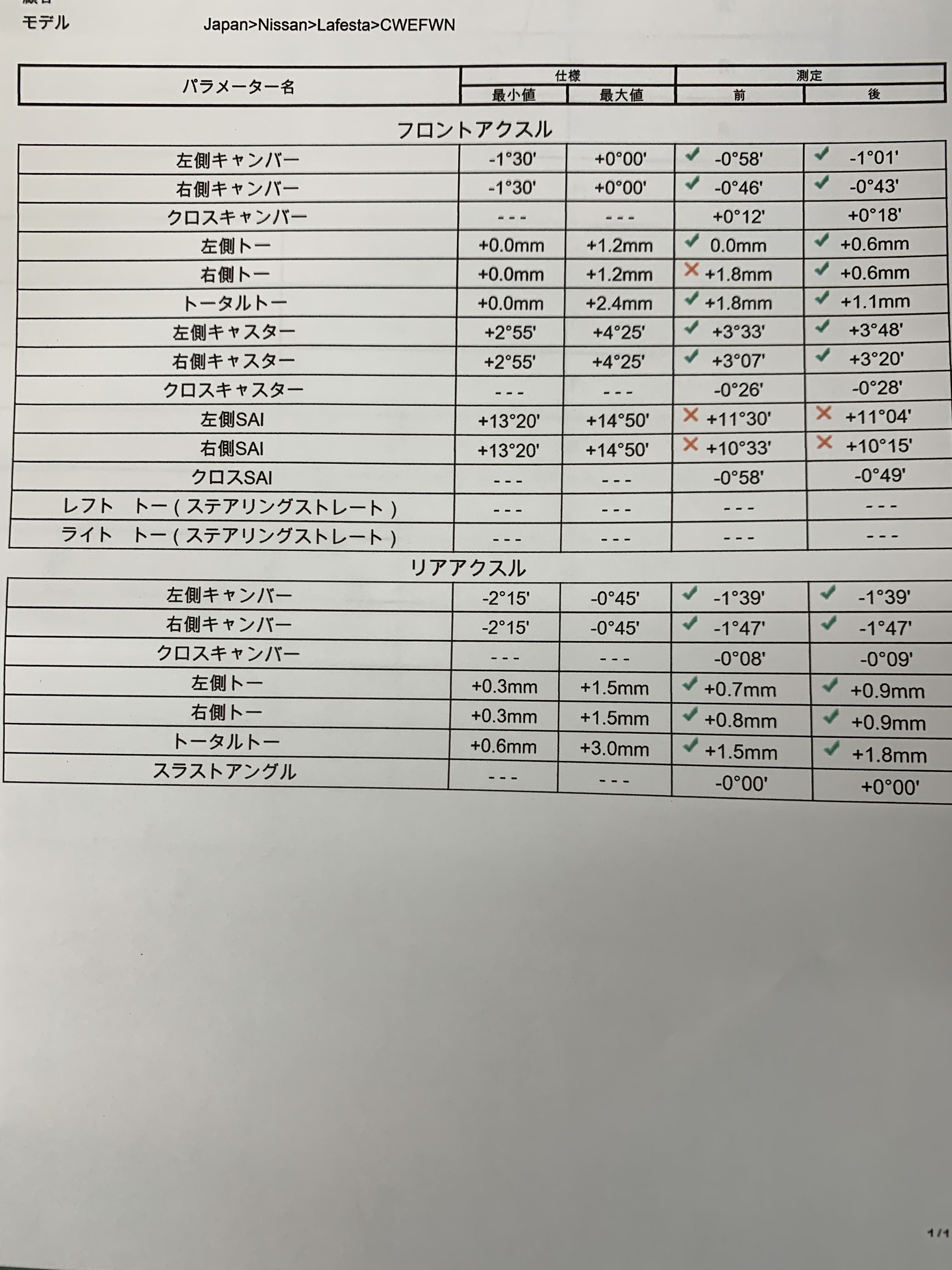 右前のトー角が基準値からズレ数値が赤く表示されています(-_-;)