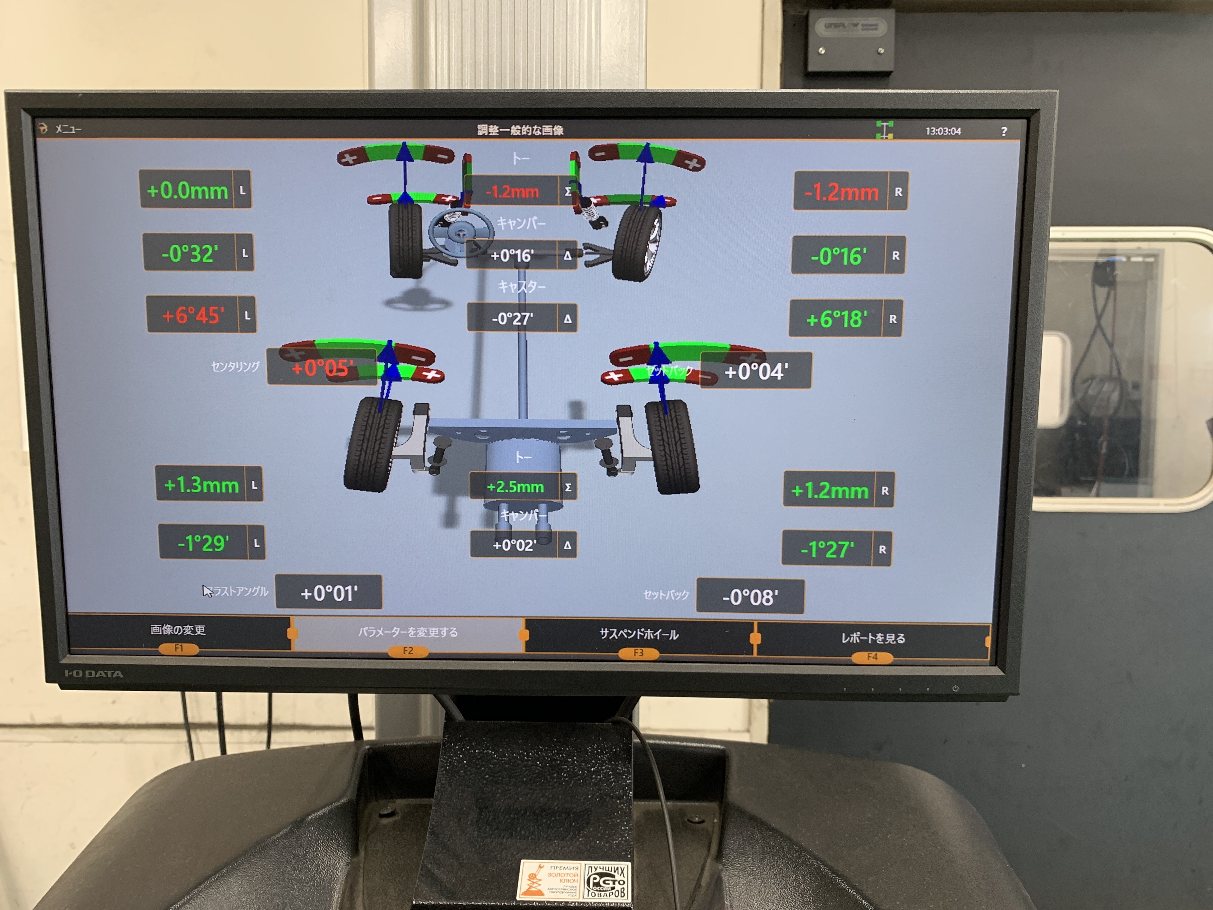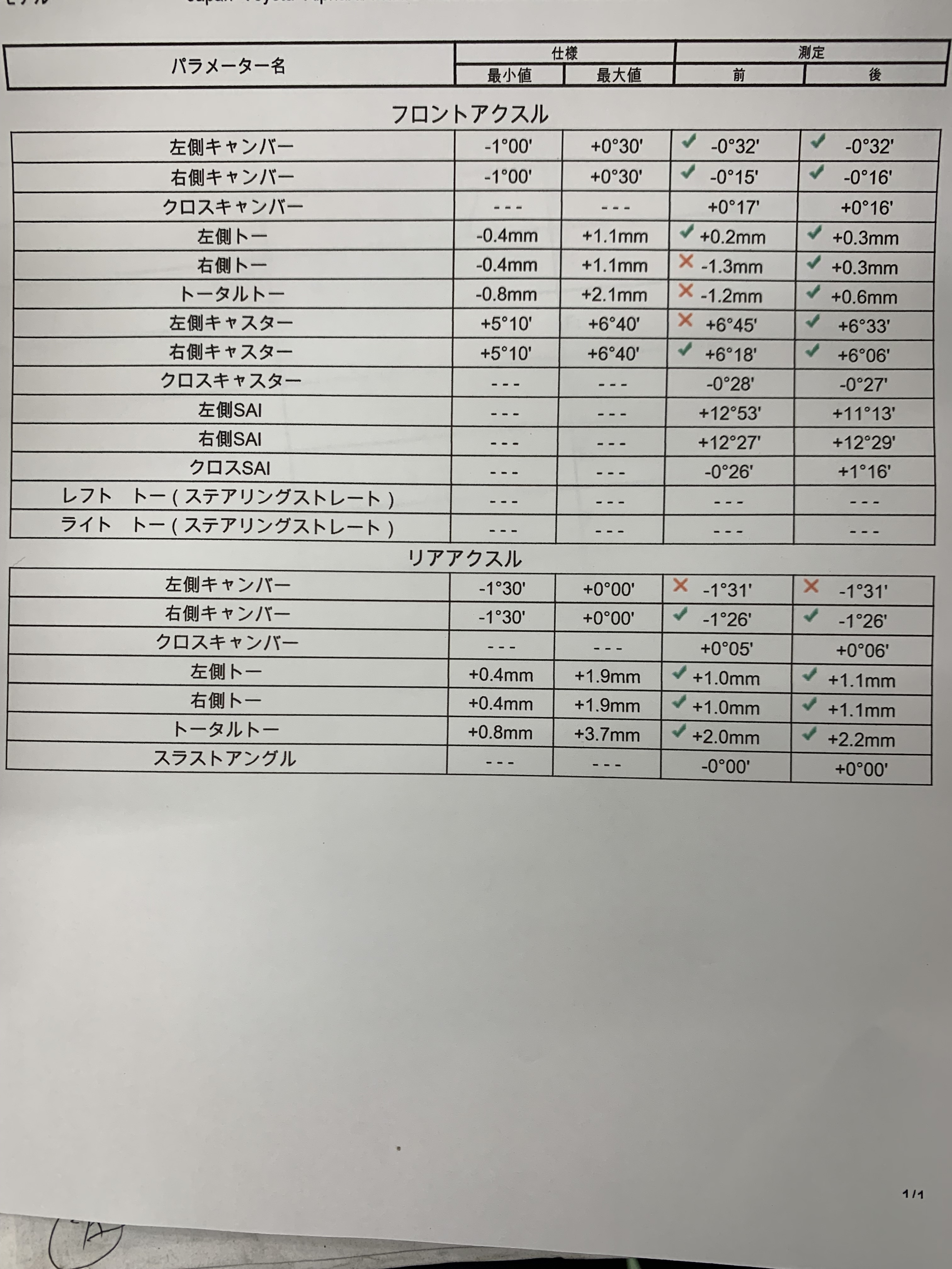 右側のタイヤが偏摩耗をしてしまうとの事でしたので実際にお車を入庫し測定をしてみると...