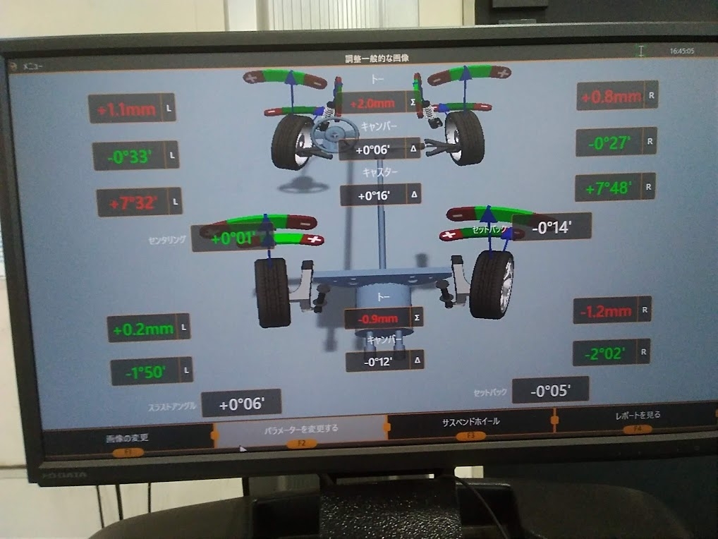 フロントの左右のトー角、右後のトー角がズレてしまっています...