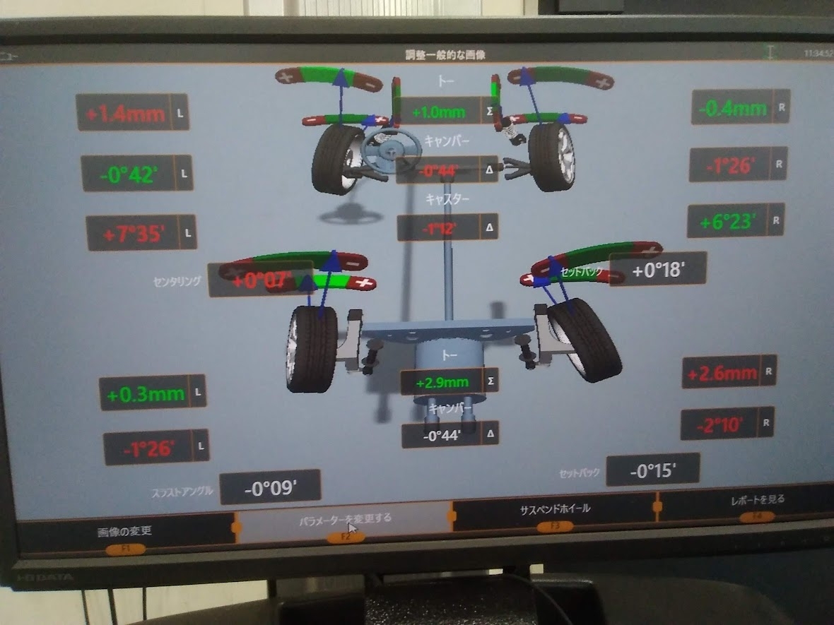 こちらの数値を基準となる値まで変更してあげる事でタイヤの片ベリ(偏摩耗)