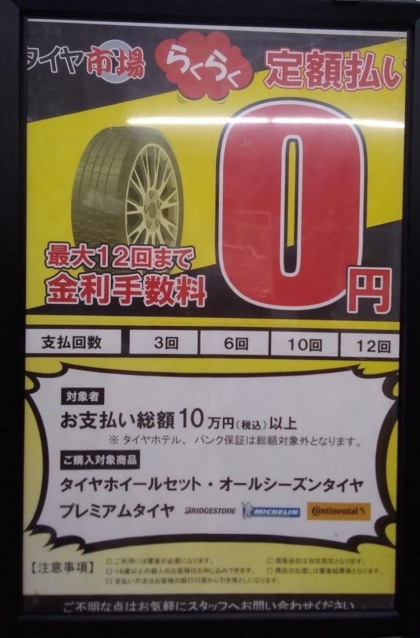 タイヤ市場のらくらく定額払いをご存知ですか??