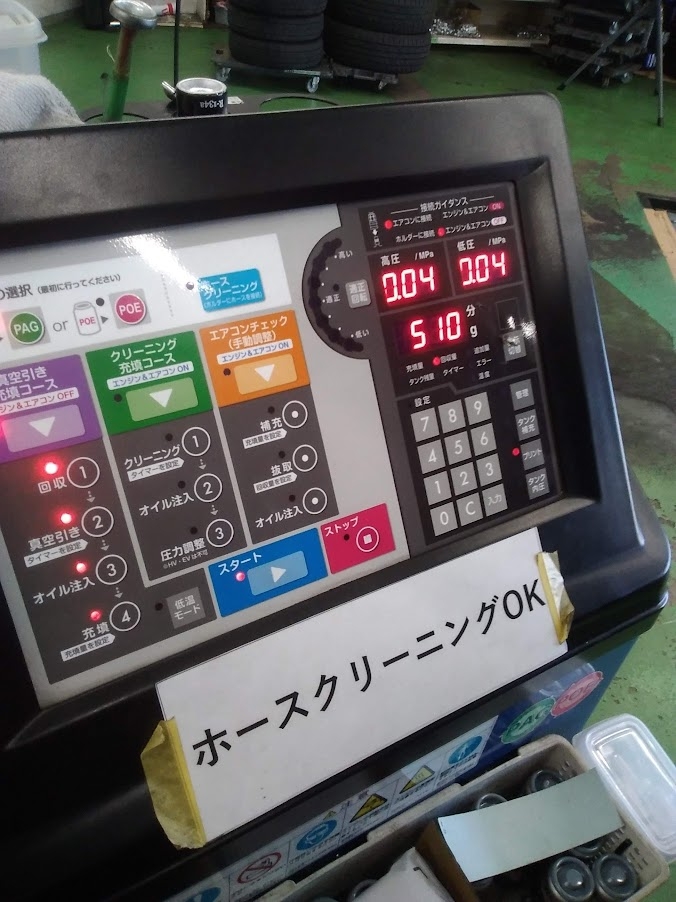 4 その後は、機械でお車のエアコンガスを一旦全部抜きます