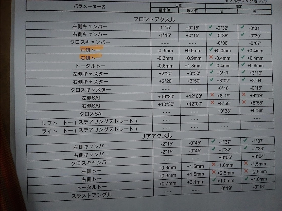 しっかり取り基準となる数値の真ん中で調整をさせて頂きました!