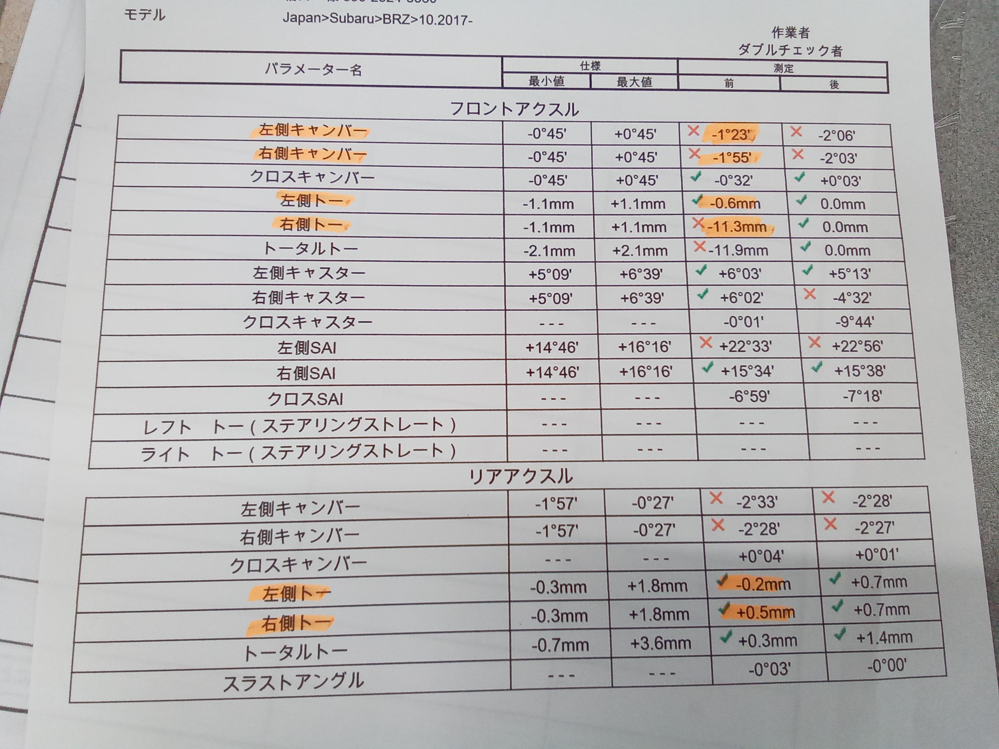 ピロ式だったので、フロントのキャンバーも調整しました!