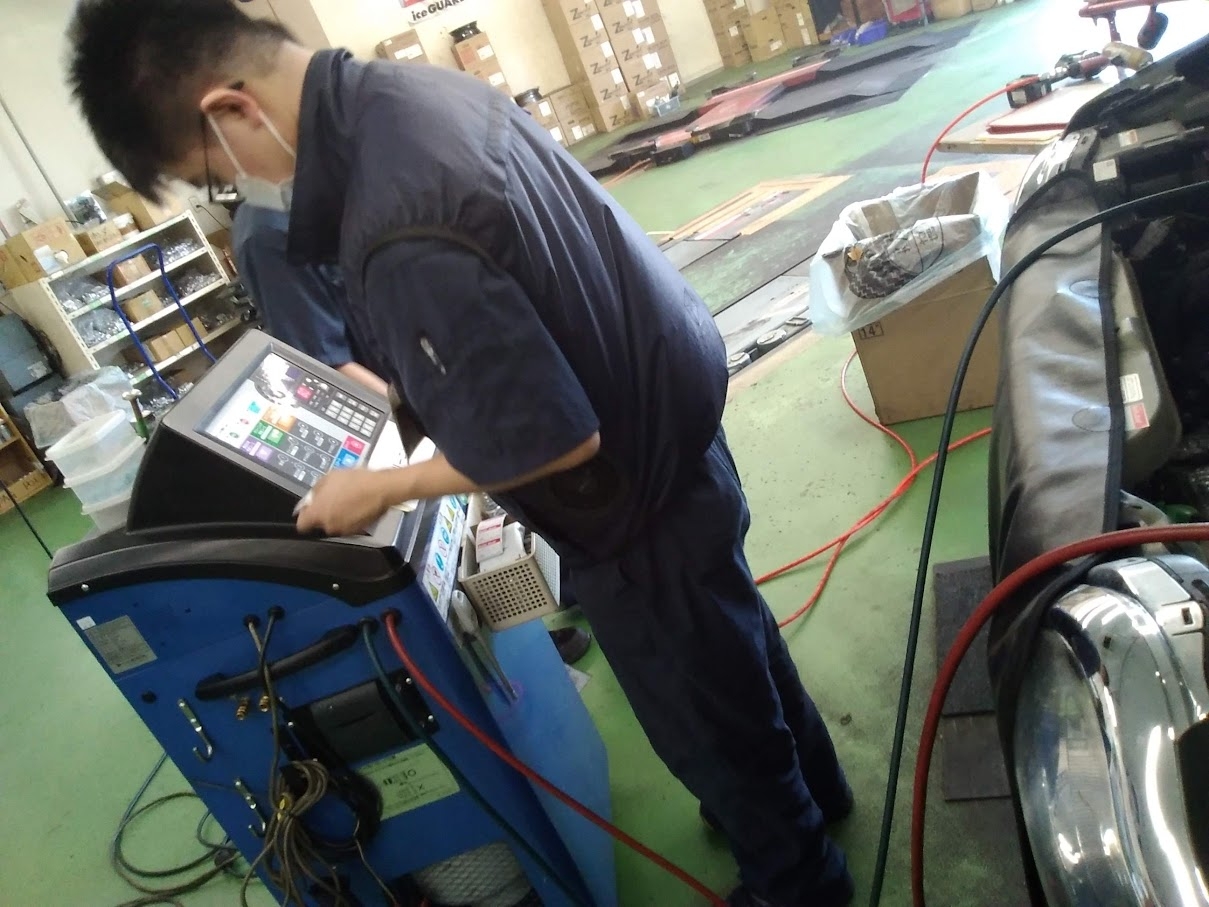 ③回収した冷媒ガス+不足分と新しい専用オイルを充填