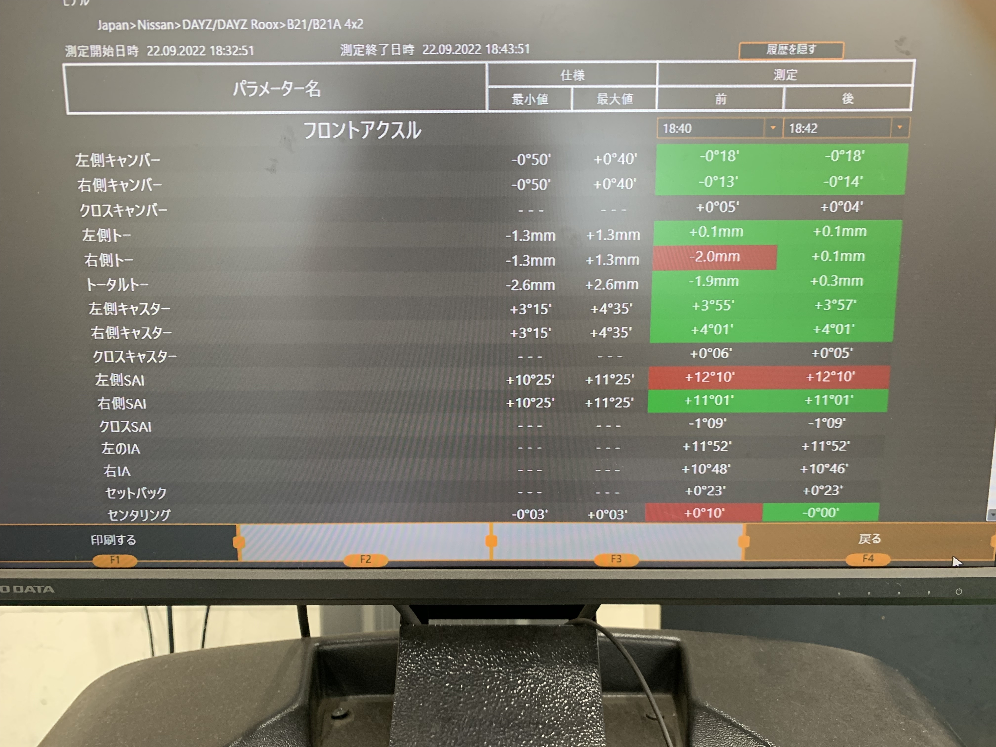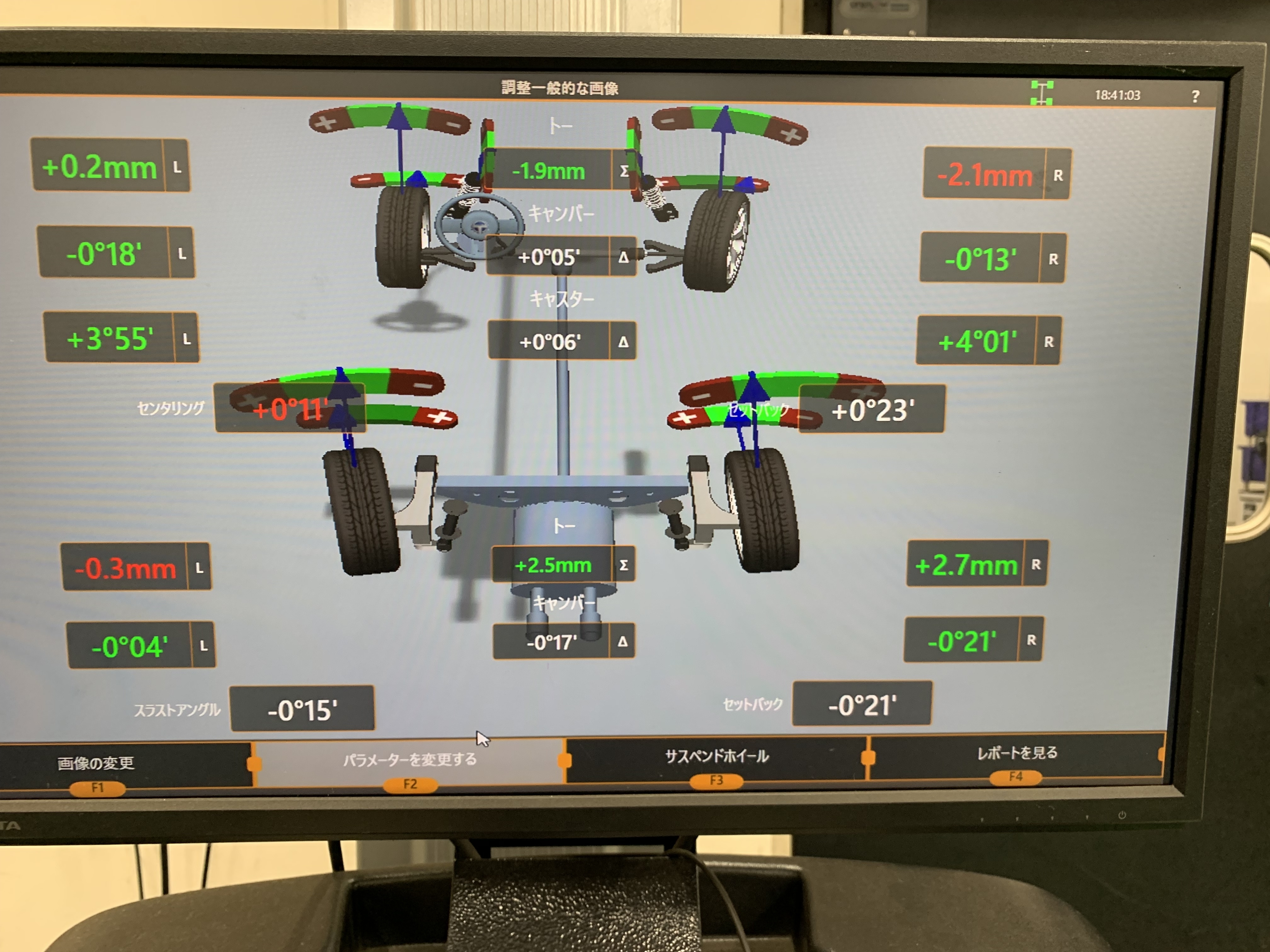 今回はタイヤの偏摩耗抑制、ハンドルセンター出しの為