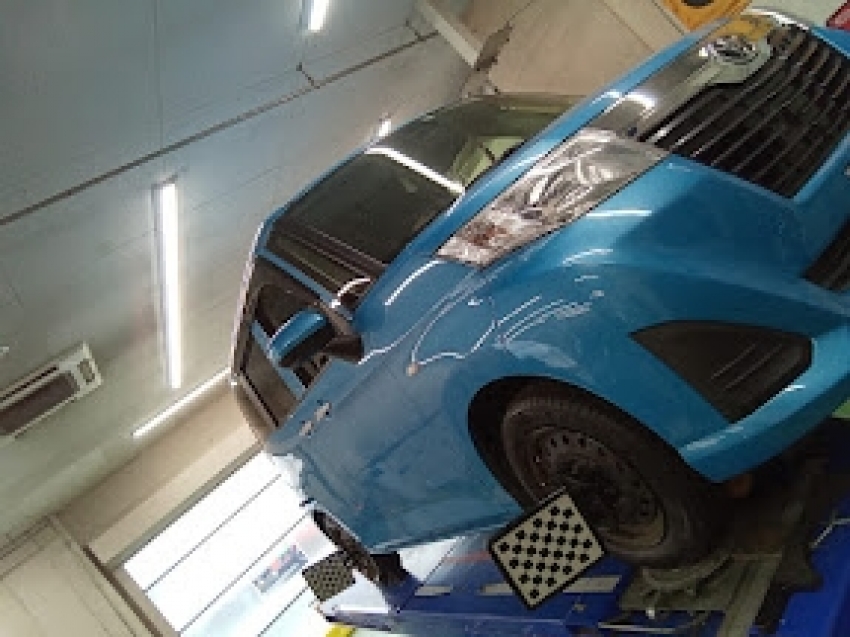 ①タイヤ・ホイールの取り付け角度を適正に調整する作業