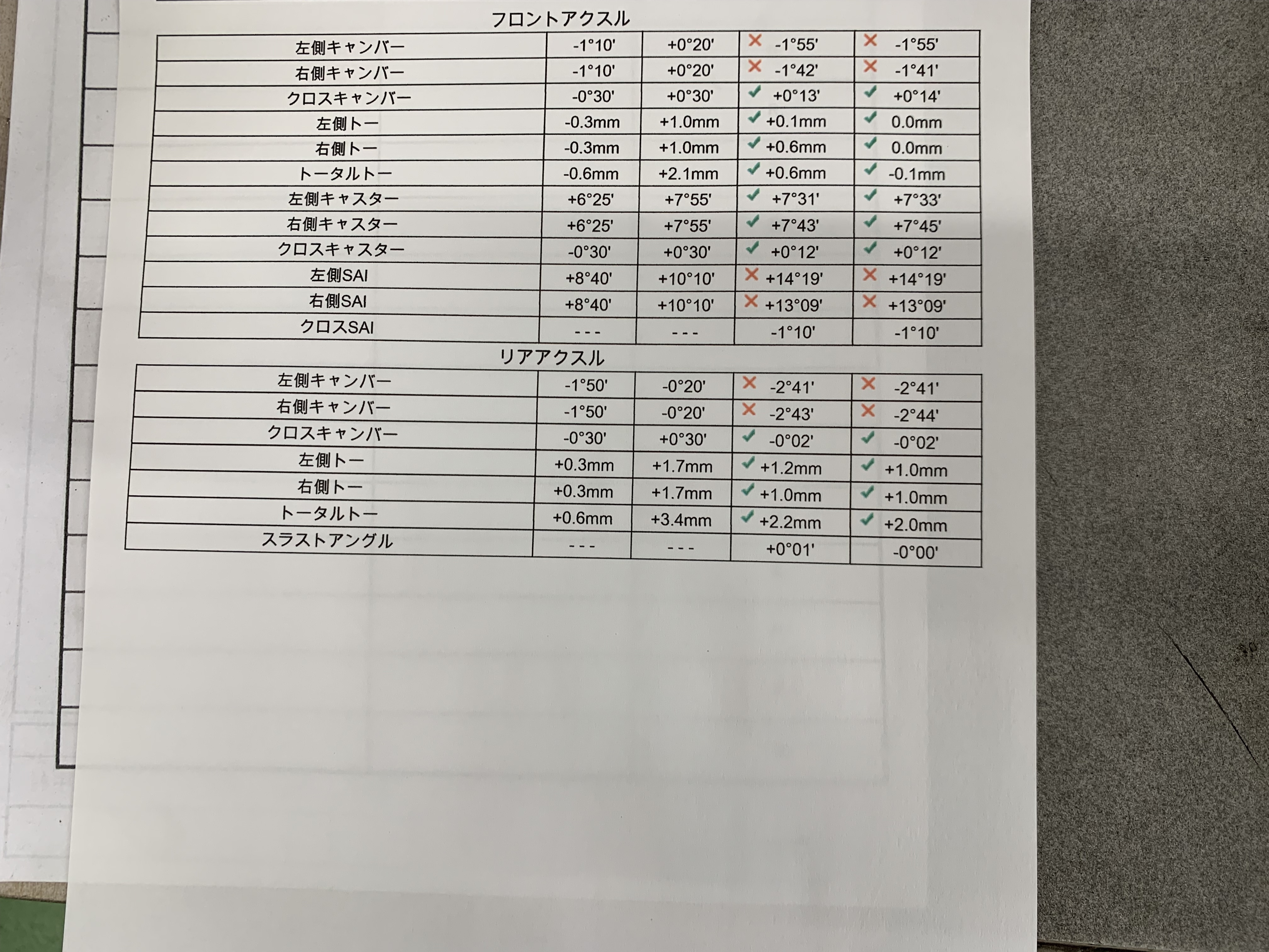 今回はリアをお車の基準値、フロントをお客様ご希望の数値で調整をさせて頂きました!