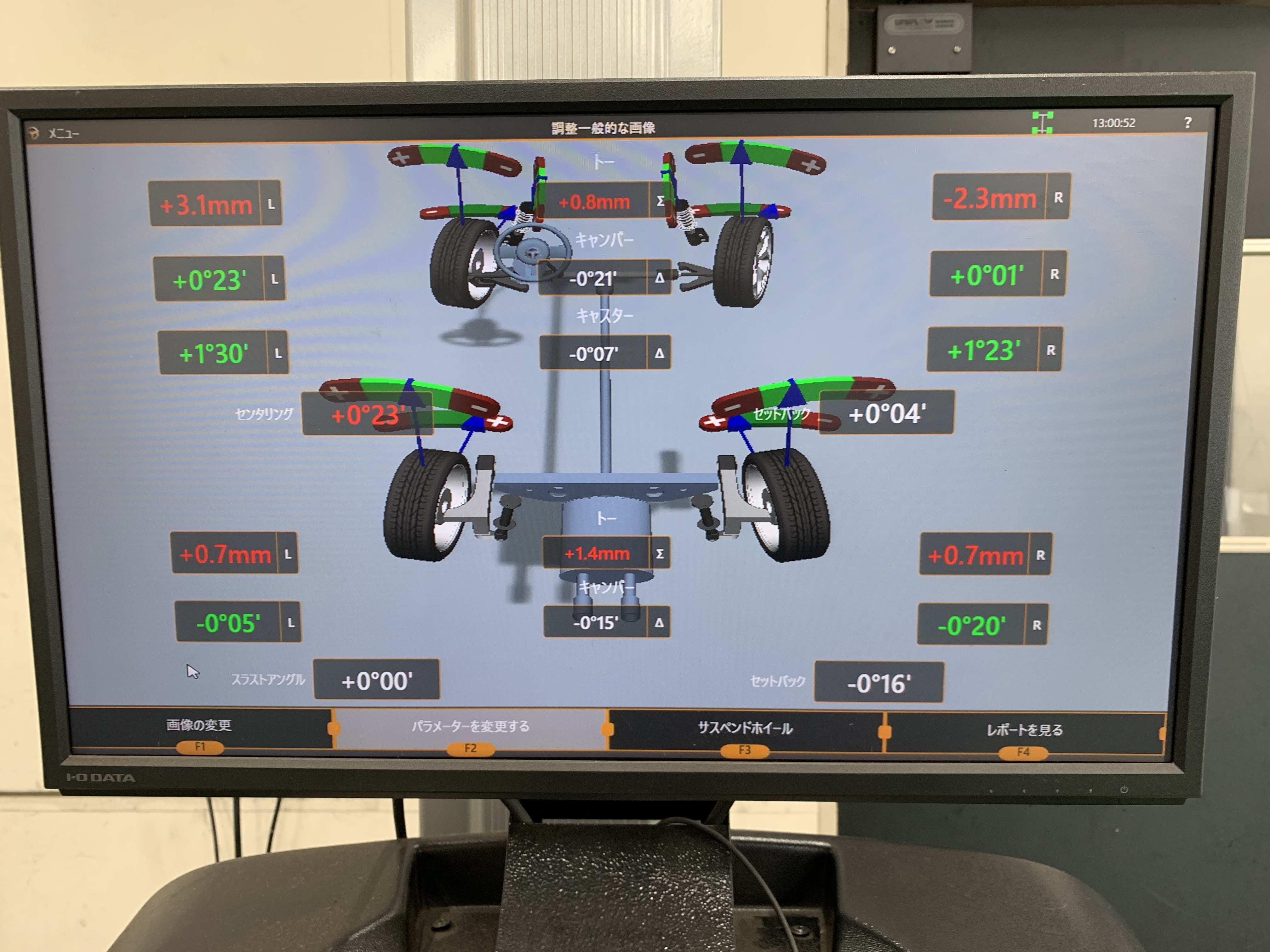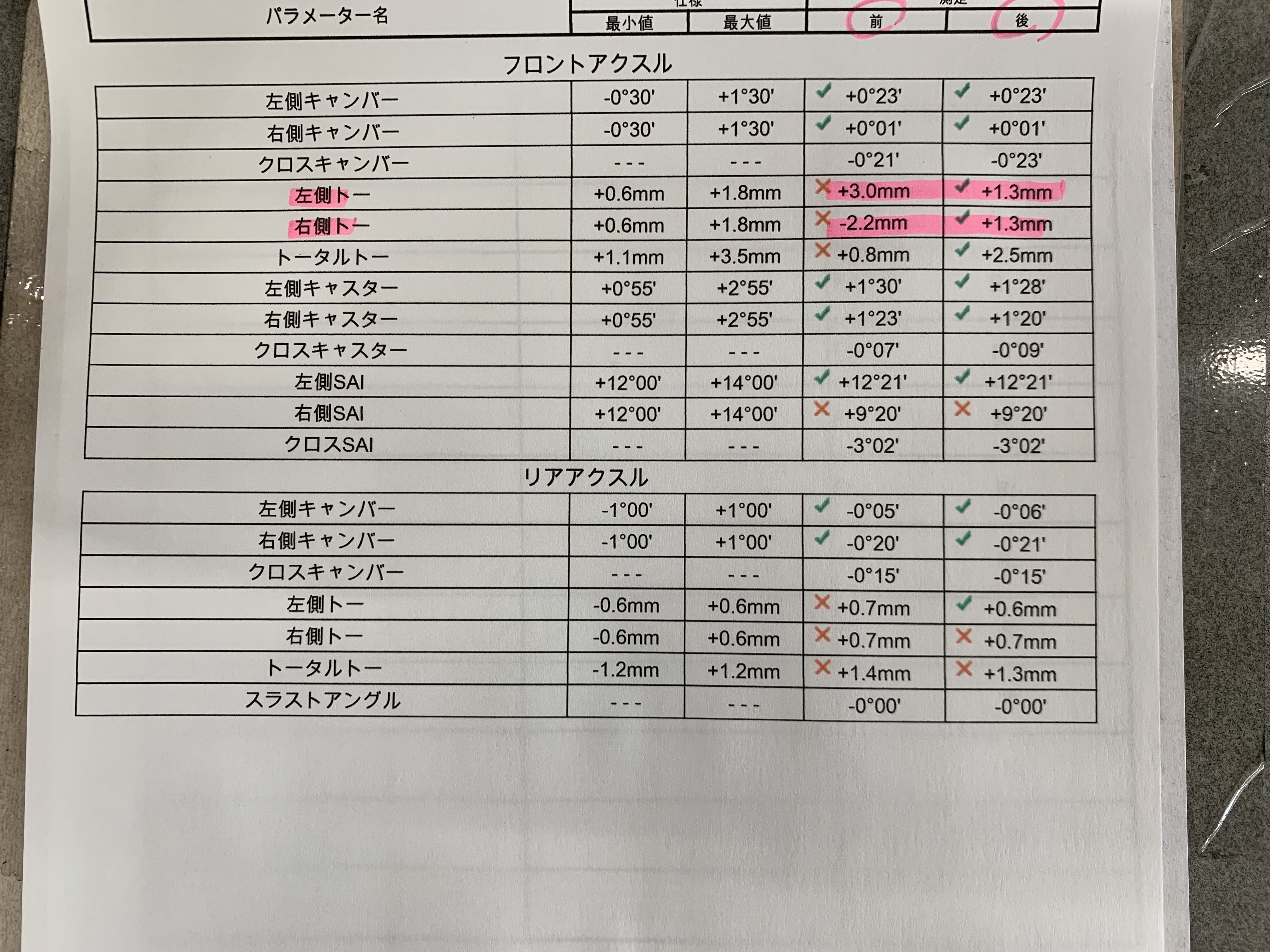 左右のフロントのトーがズレてしまい数値が赤色で表示されています!