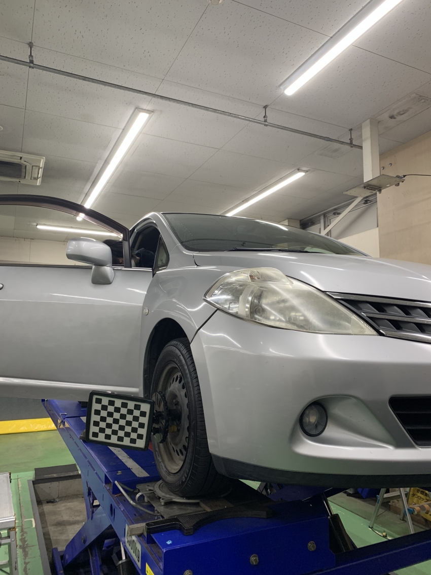 ティーダは純正の足回りですとフロントのトーが調整箇所になります!