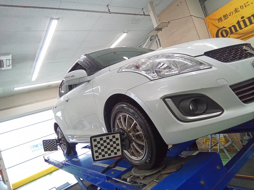 先程、スイフトのタイヤ交換&アライメント調整をおこなったので