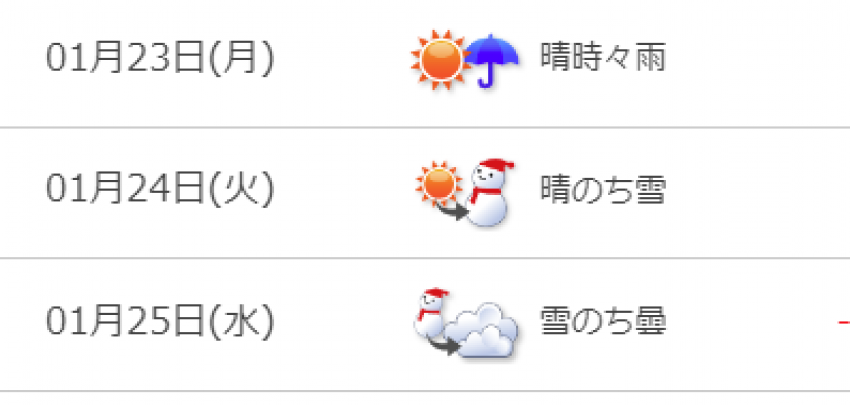 予報では1月23日~25日にかけて予報が出ているので