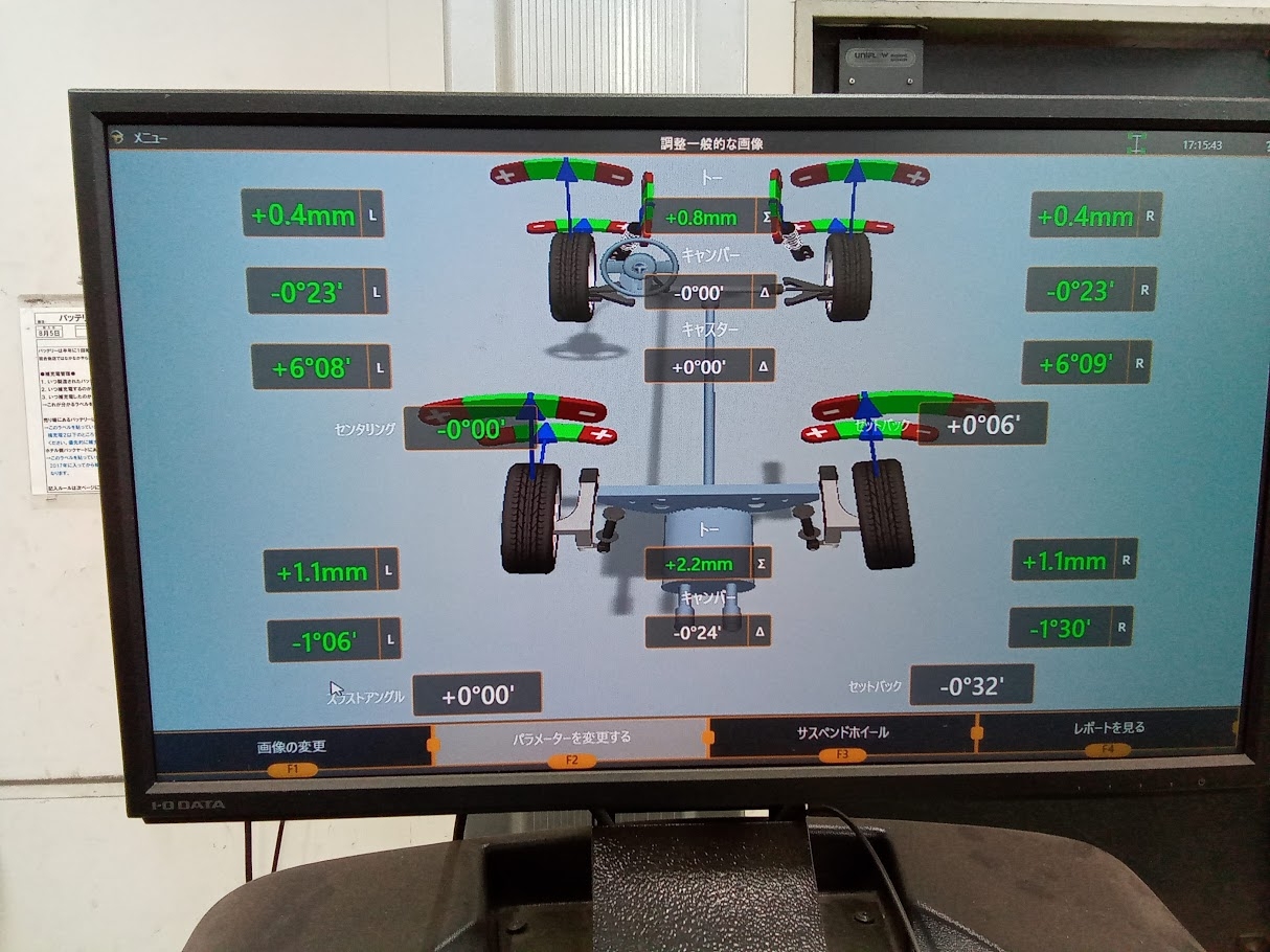 今回調整させて頂いたアルファードは前後のトーが調整箇所になるので基準値で調整させて頂きます!