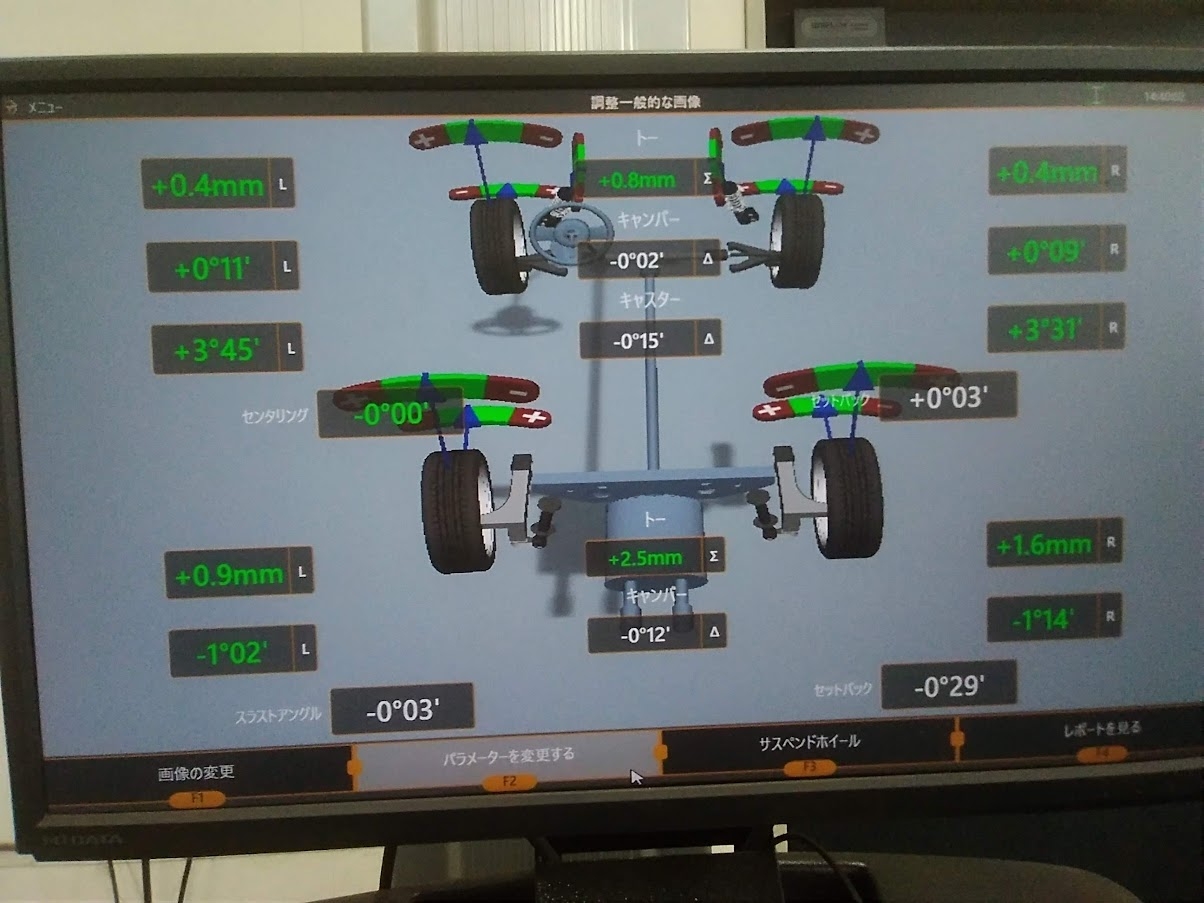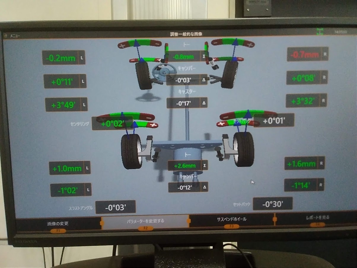 調整後は左右のばらつきがなくなり、赤色で表示されていた箇所が