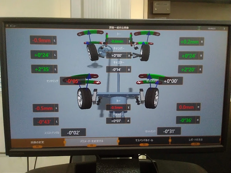 調整後は左右のばらつきがなくなり、赤色で表示されていた箇所が