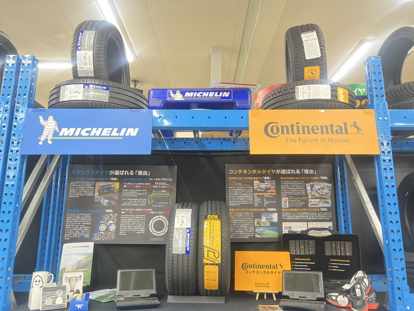 今回はミシュラン、コンチネンタルのコーナーを設置しました!