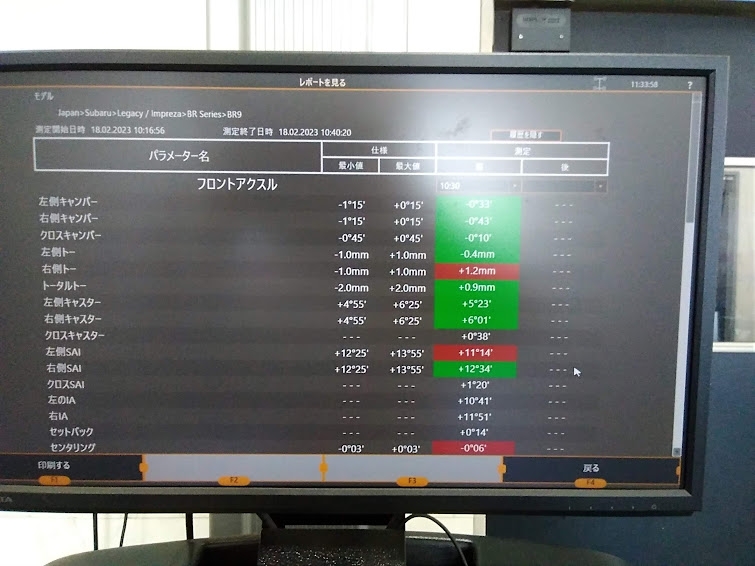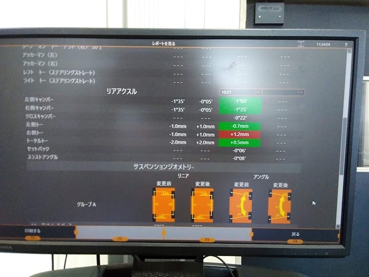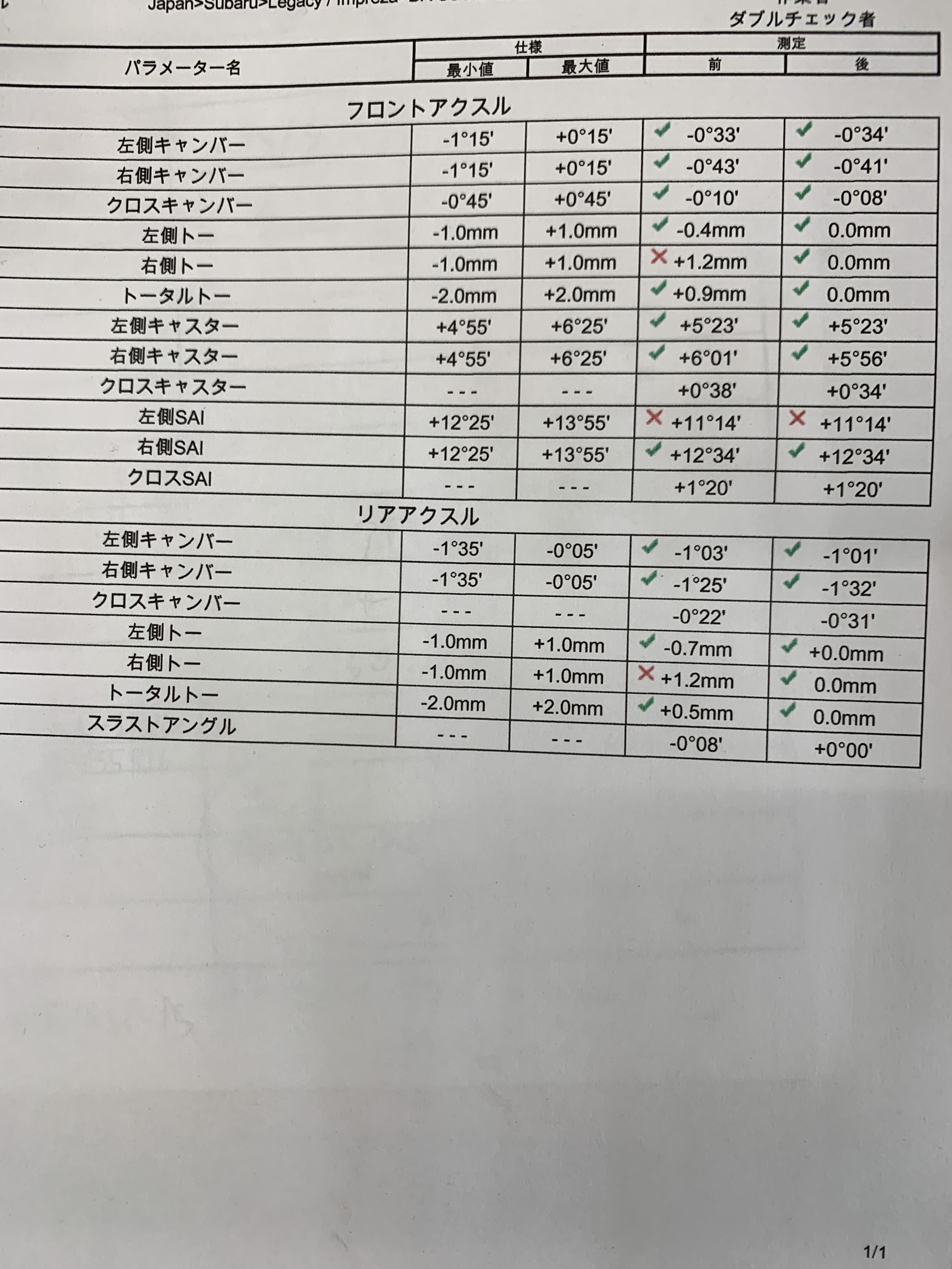 今回調整させて頂いたレガシィは前後のトーが調整箇所になります!