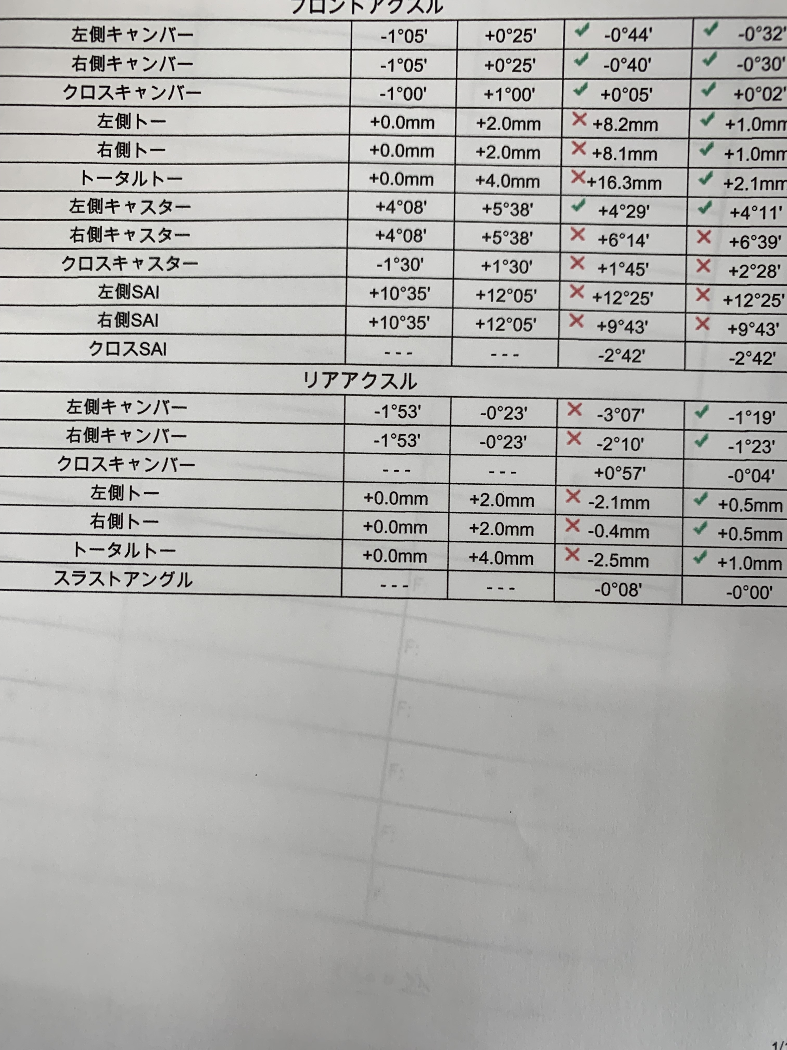 今回は前後のトーとキャンバーを調整させて頂きました!