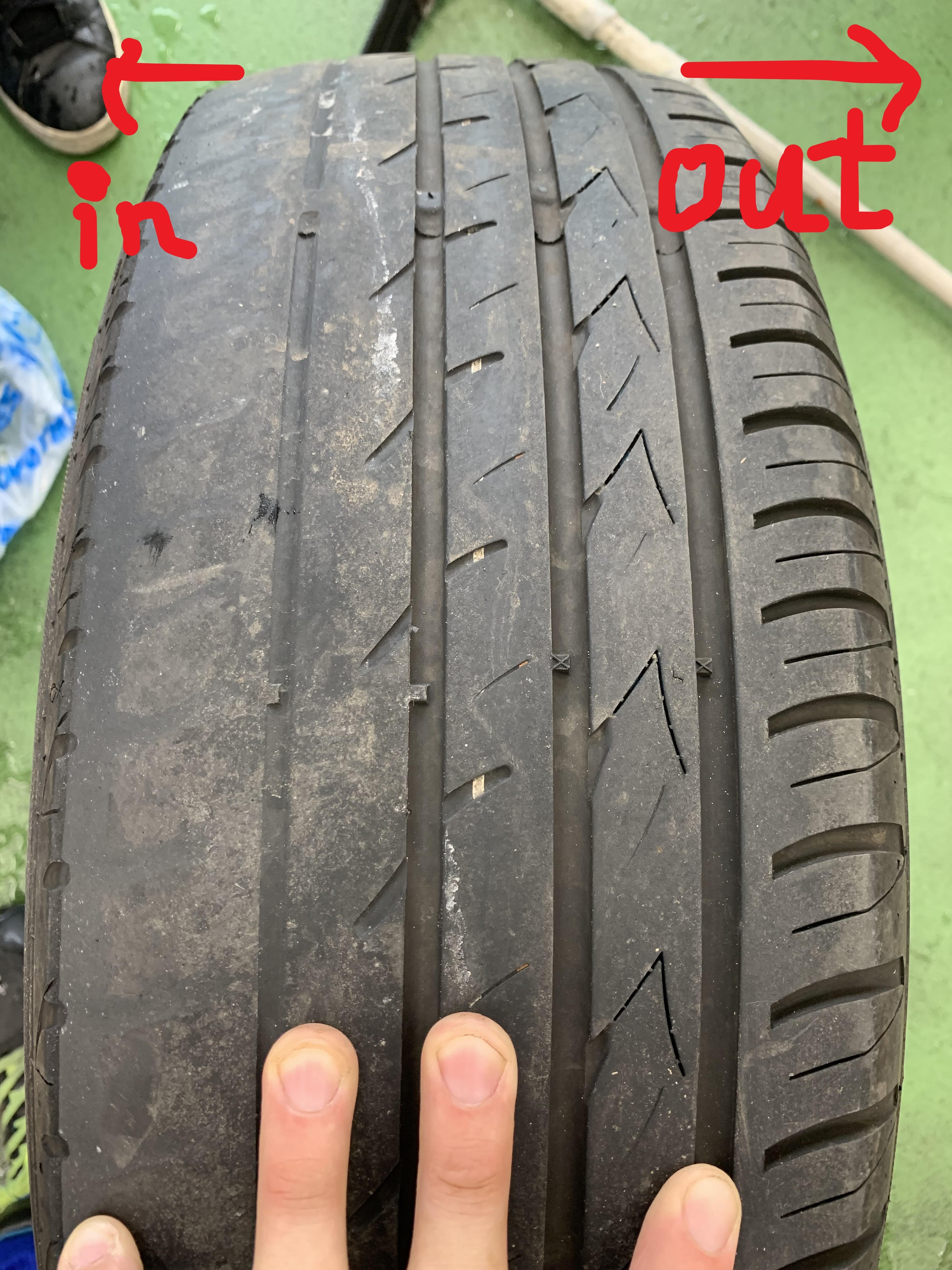 もしかしたら、タイヤの向きが左右で揃っていないかもしれません。