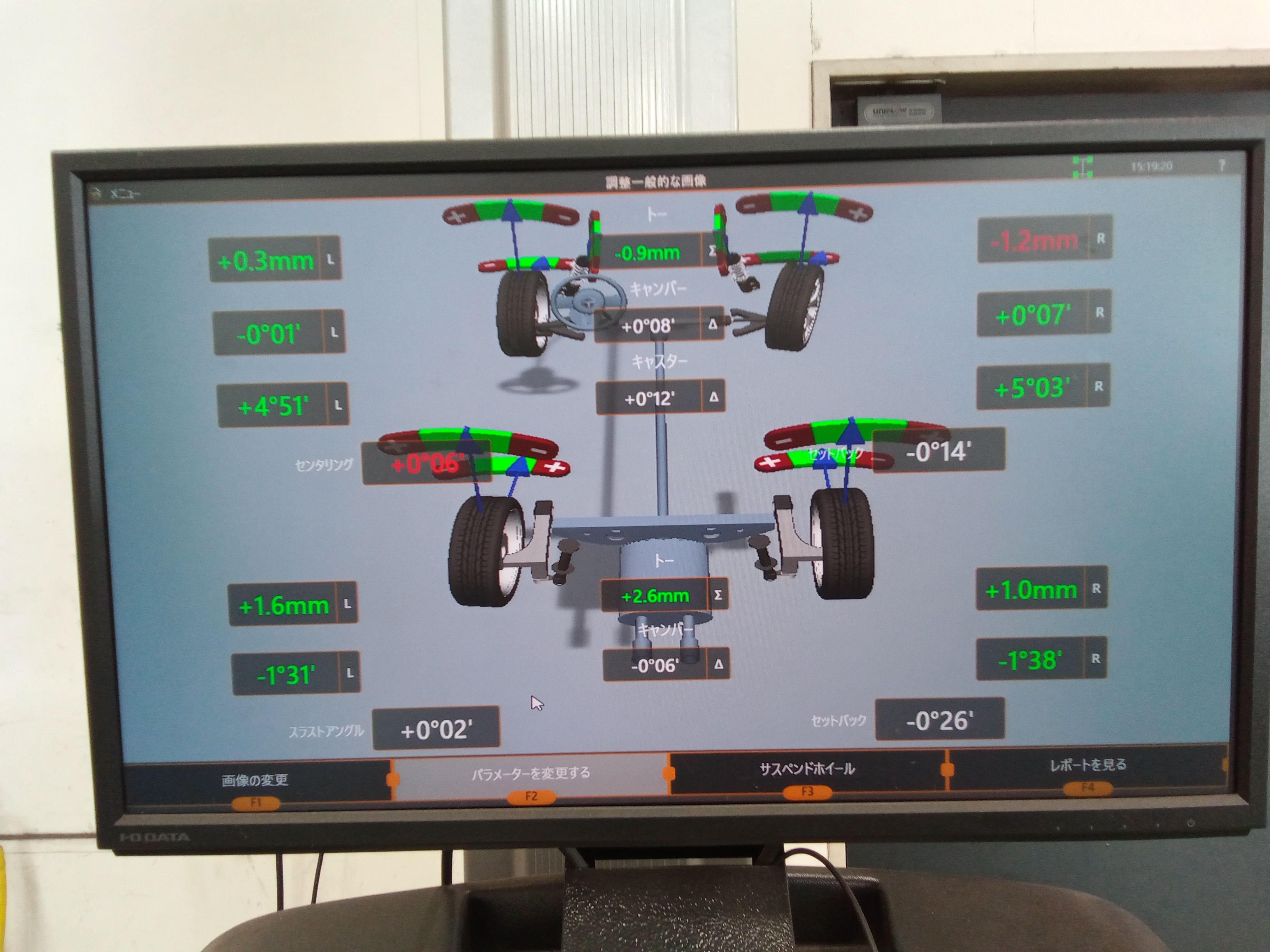 右前のフロントのタイヤが外に開いてしまっています、、、