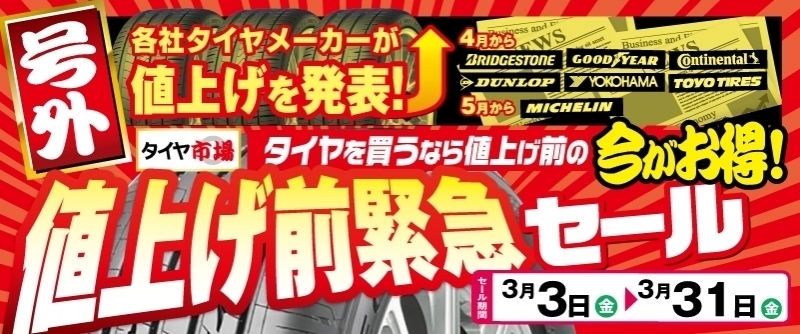 4月からタイヤが値上がりします!!
