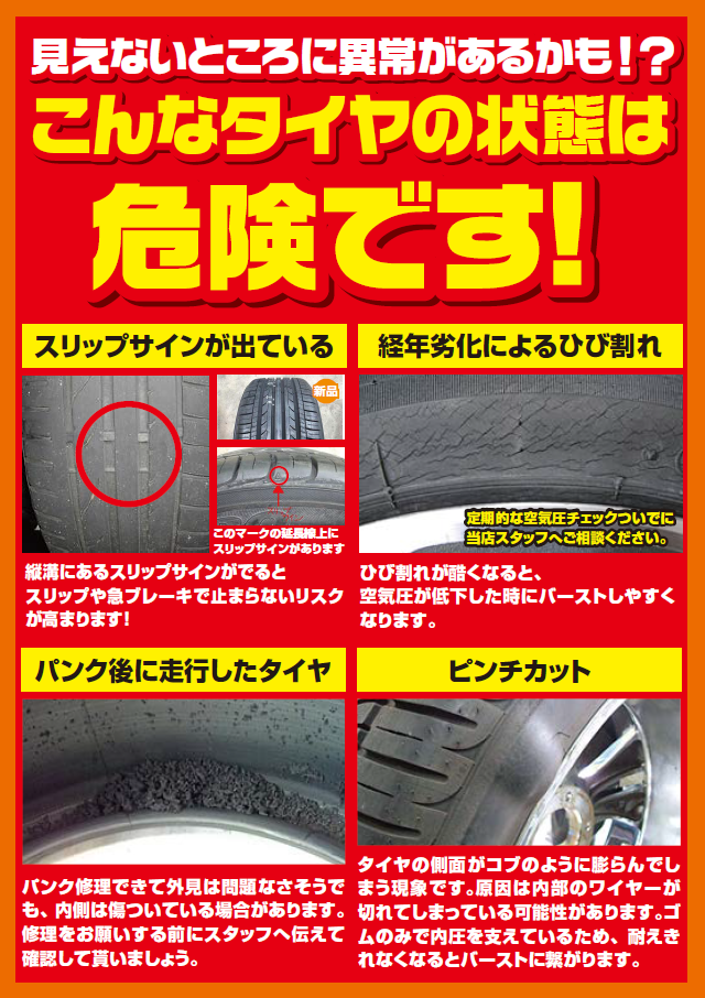 タイヤ点検POP.PNG上記の点検項目について一度点検をしてみて下さい!
