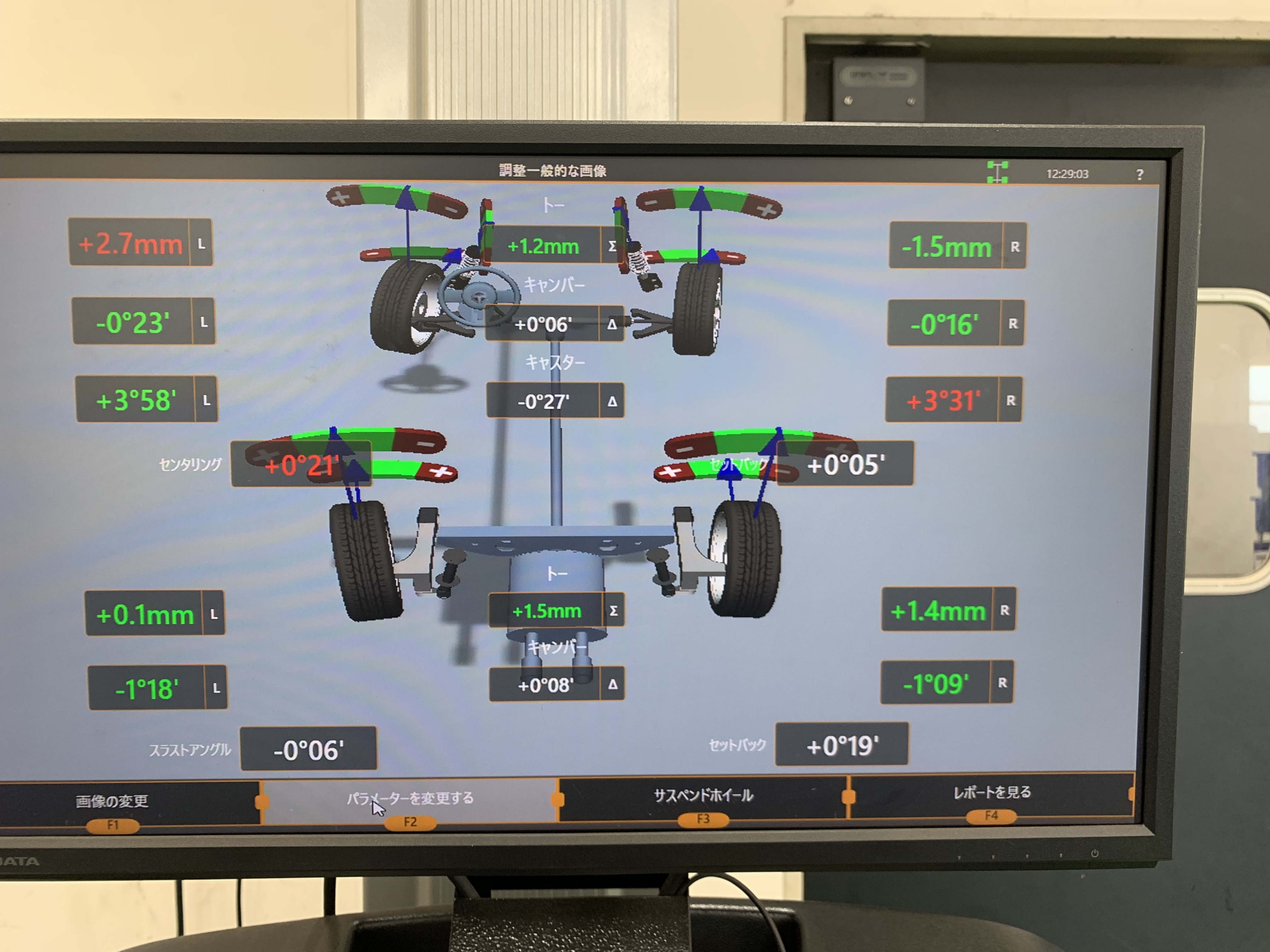 ①タイヤ・ホイールの取り付け角度を適正に調整する作業