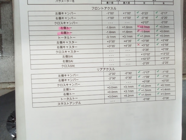 ②タイヤ・ホイールが適正な角度で整列している状態のこと。