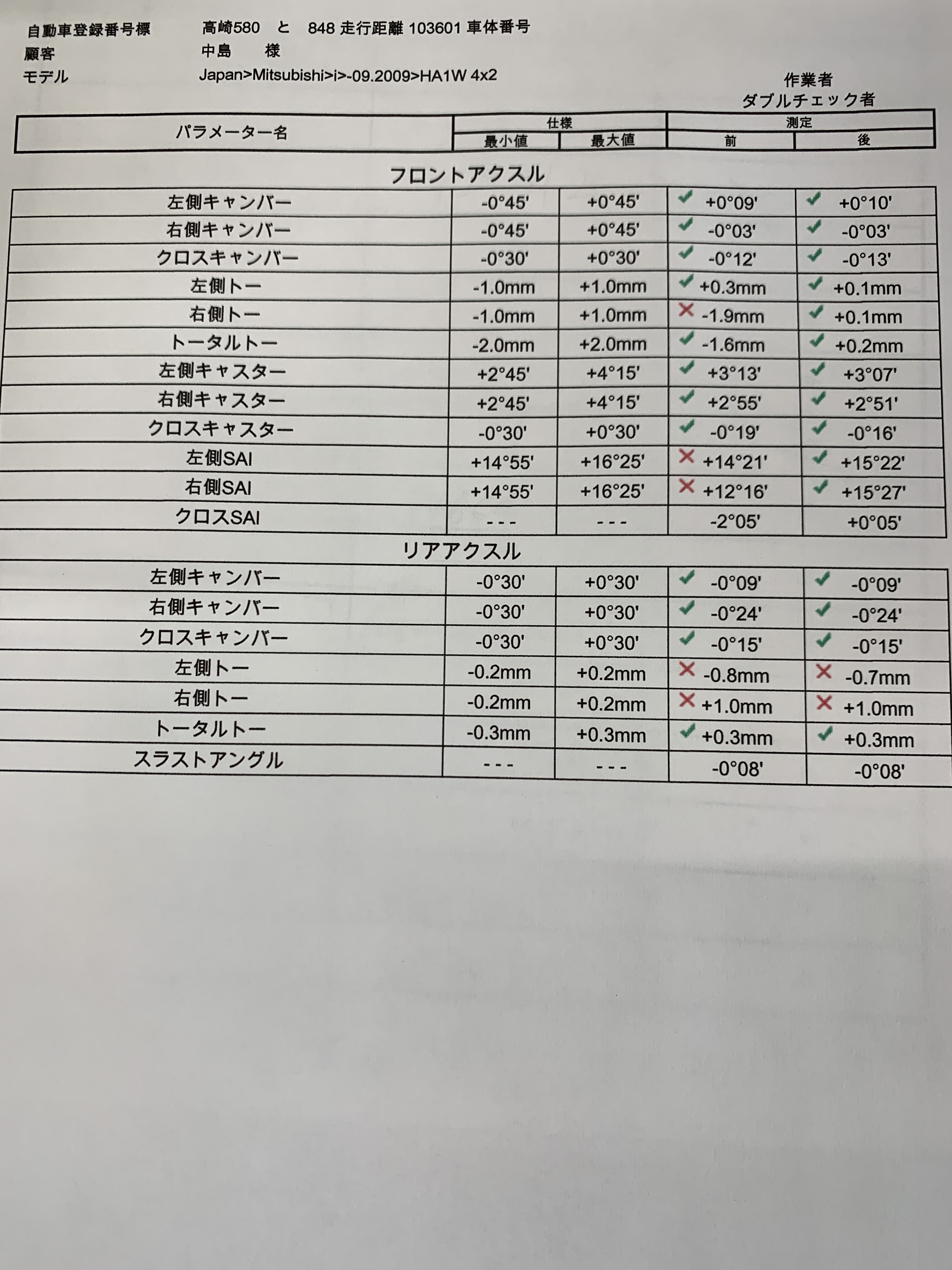 今回調整させて頂いたアイはタイヤが内減りをしてしまっていた為、