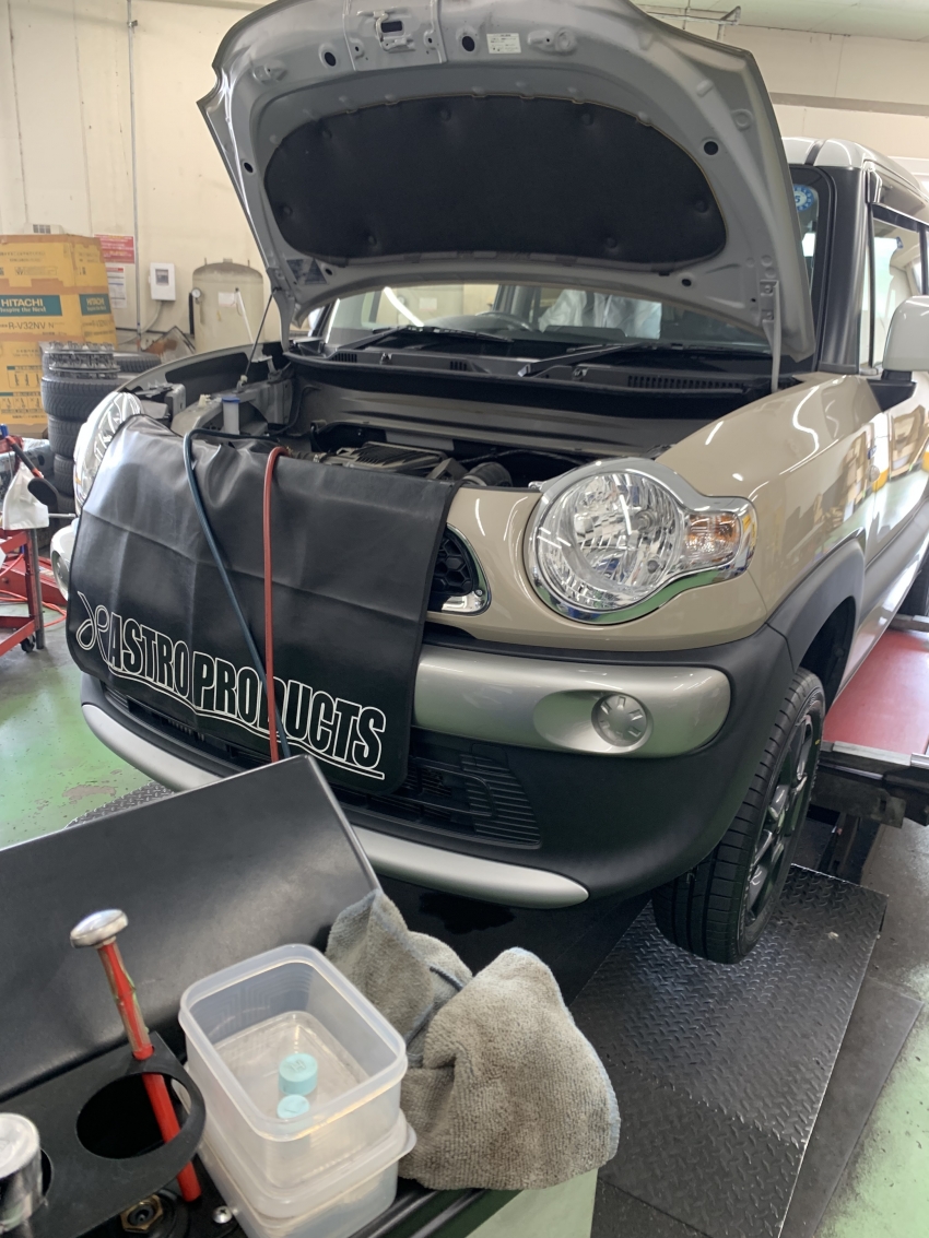 今回クロスビーでエアコン真空引き作業をさせて頂きました!