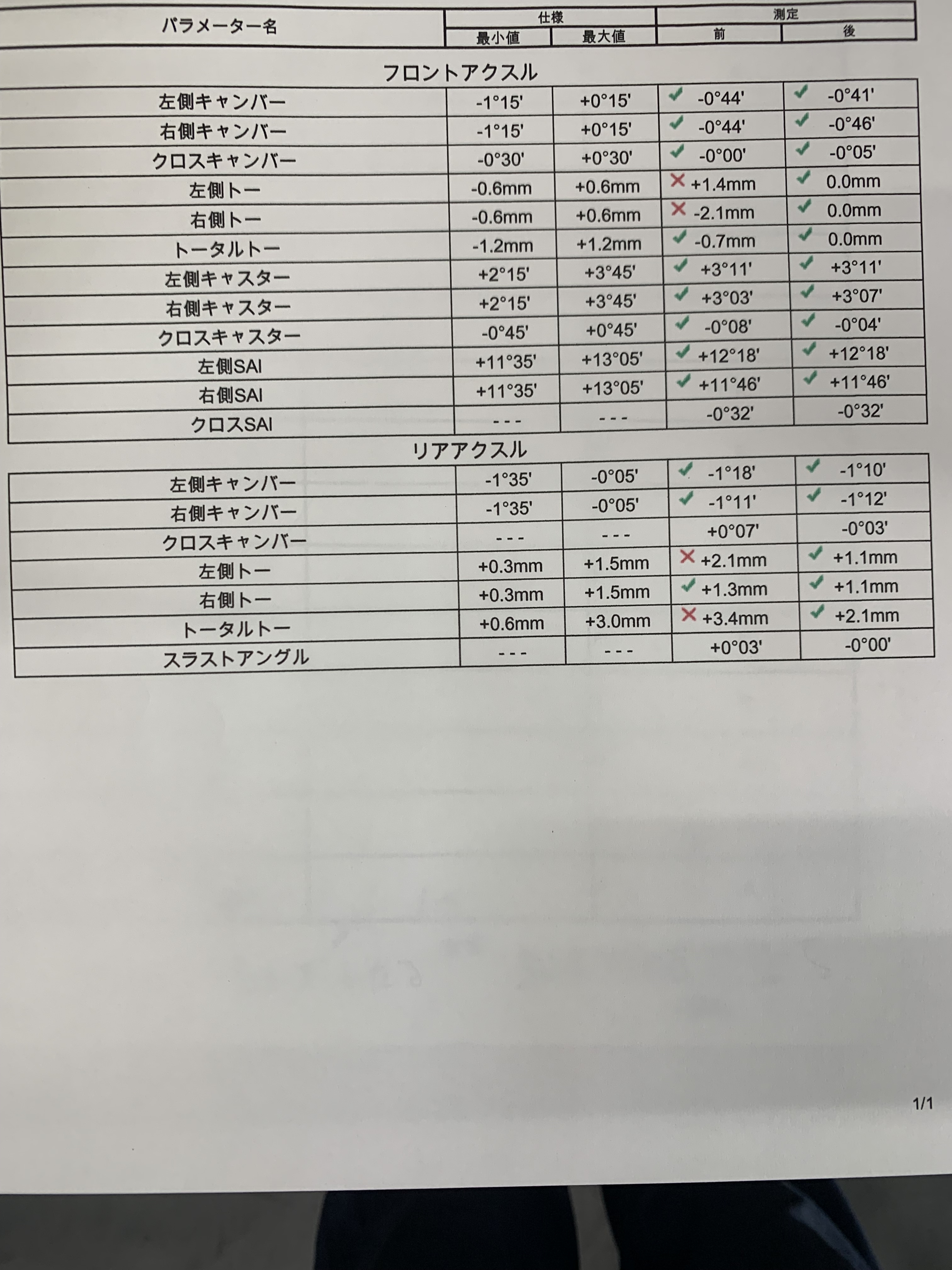 調整後は左右の数値のバラツキが無くなり、センターズレも解消されました!