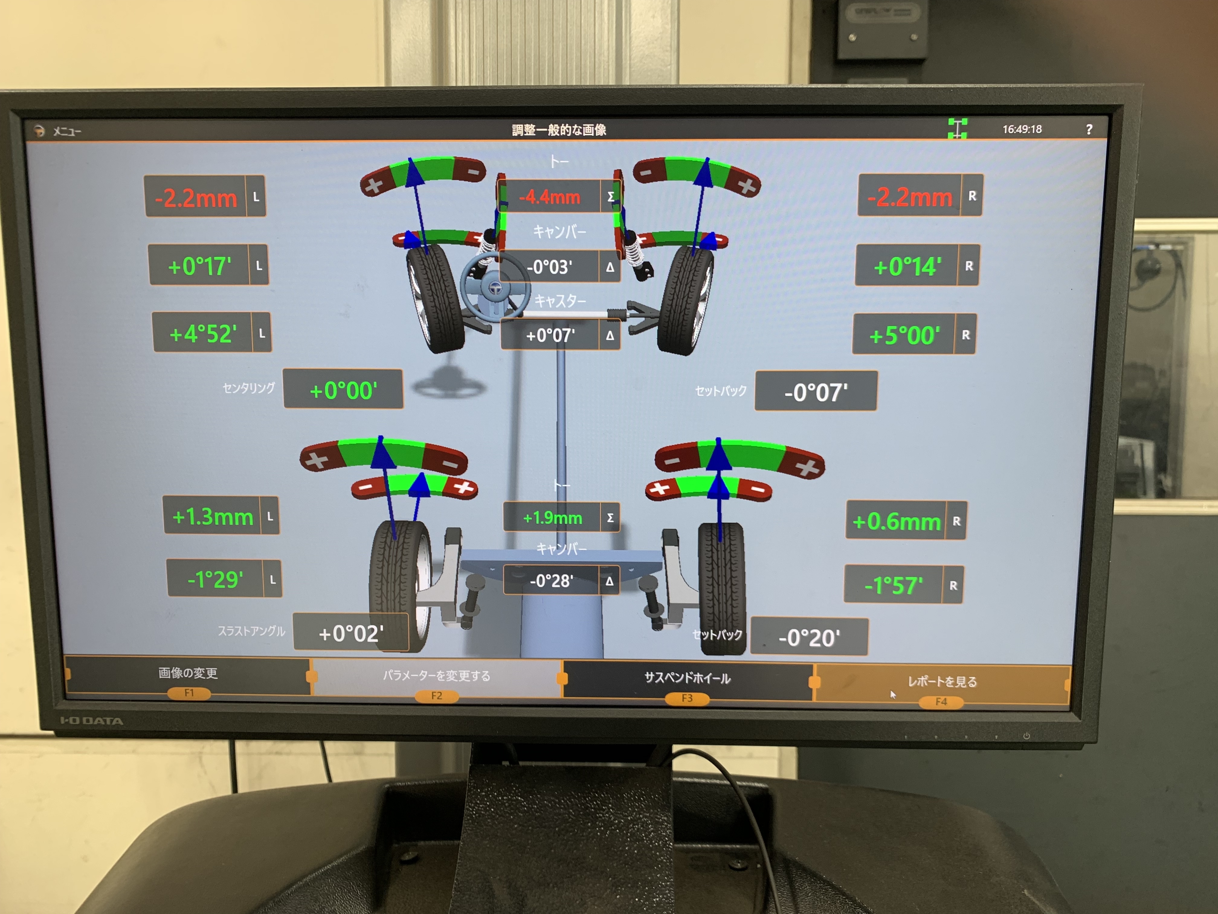 測定をした結果フロント左右のトーが大きくズレてしまっていました!
