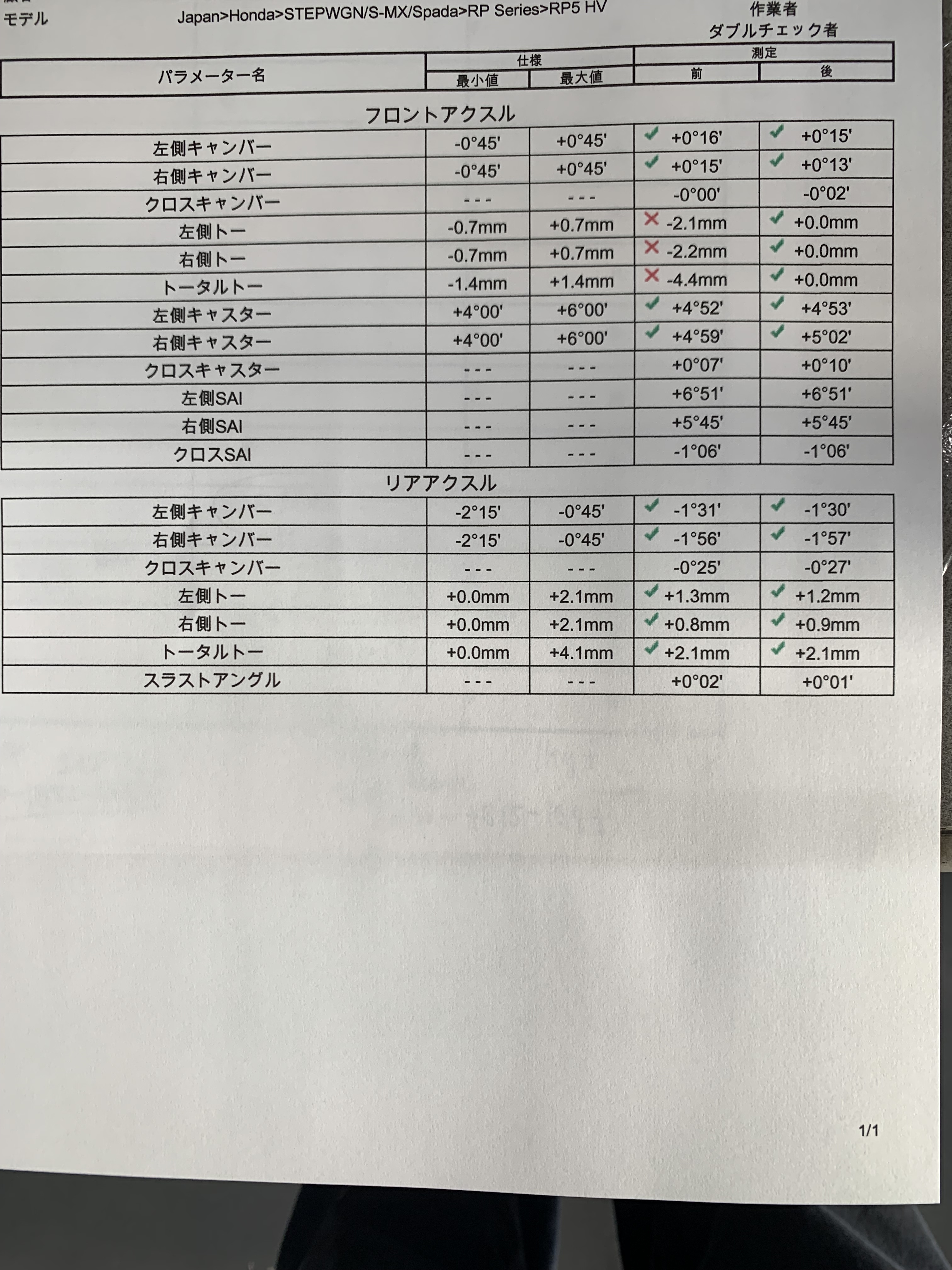 今回作業をさせて頂いたステップワゴンはフロントのトーが調整箇所になります!