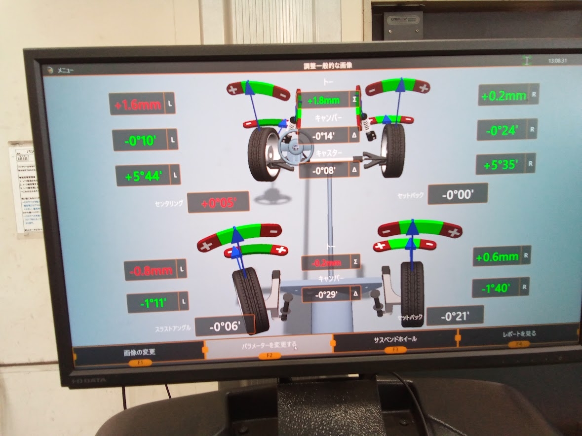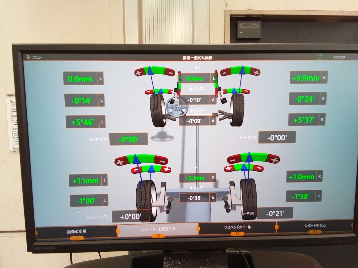 今回作業をさせて頂いたレガシィは前後のトーが調整箇所になります!