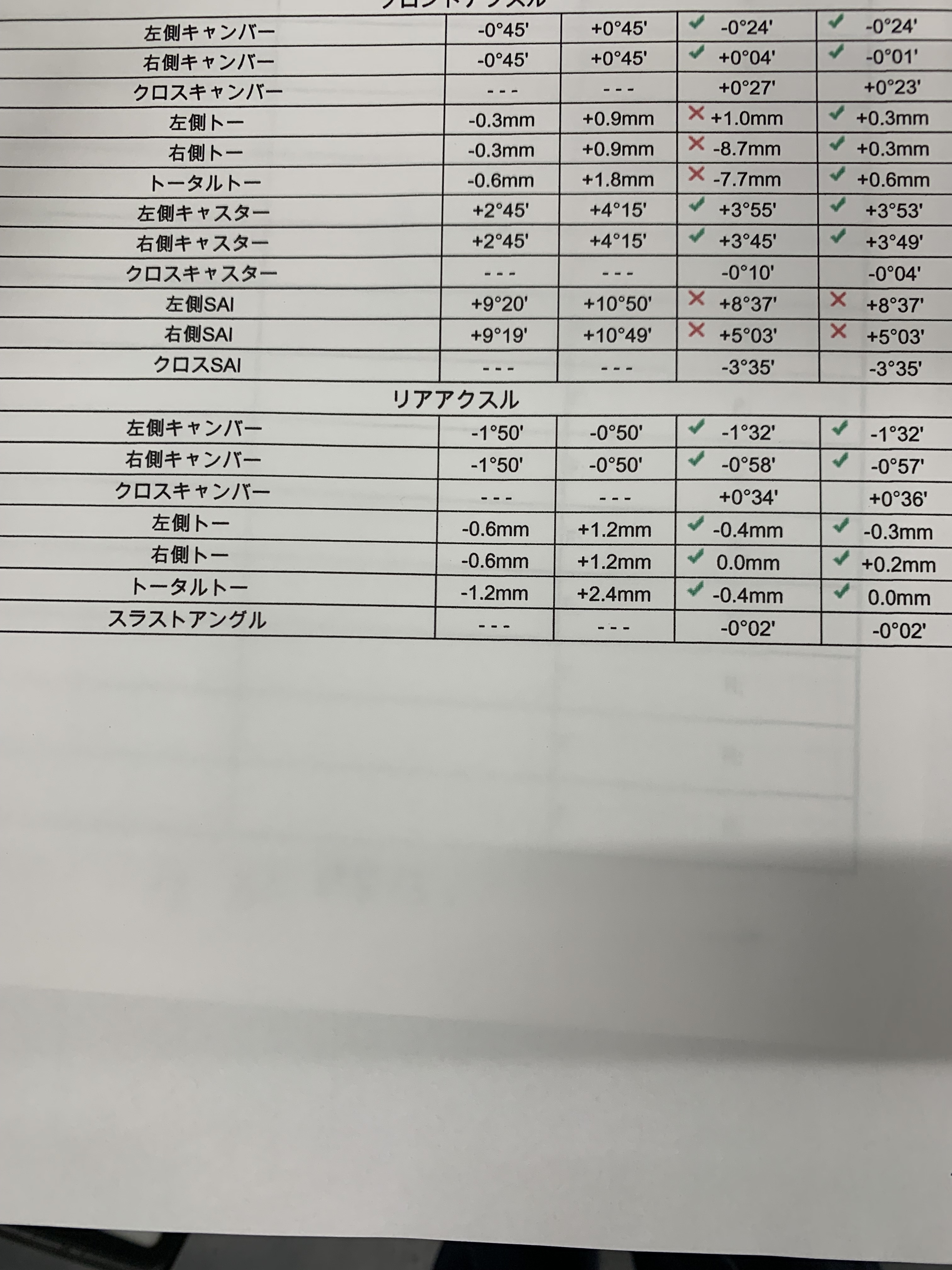 アライメントの調整をすることよって路面に対してタイヤが均一に