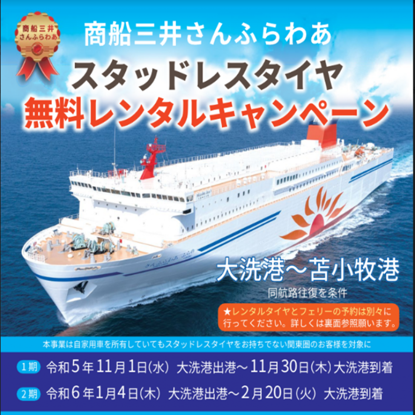 商船三井さんふらわあの大洗港~苫小牧港航路お申し込みでスタッドレスタイヤのレンタル料が無料になります!