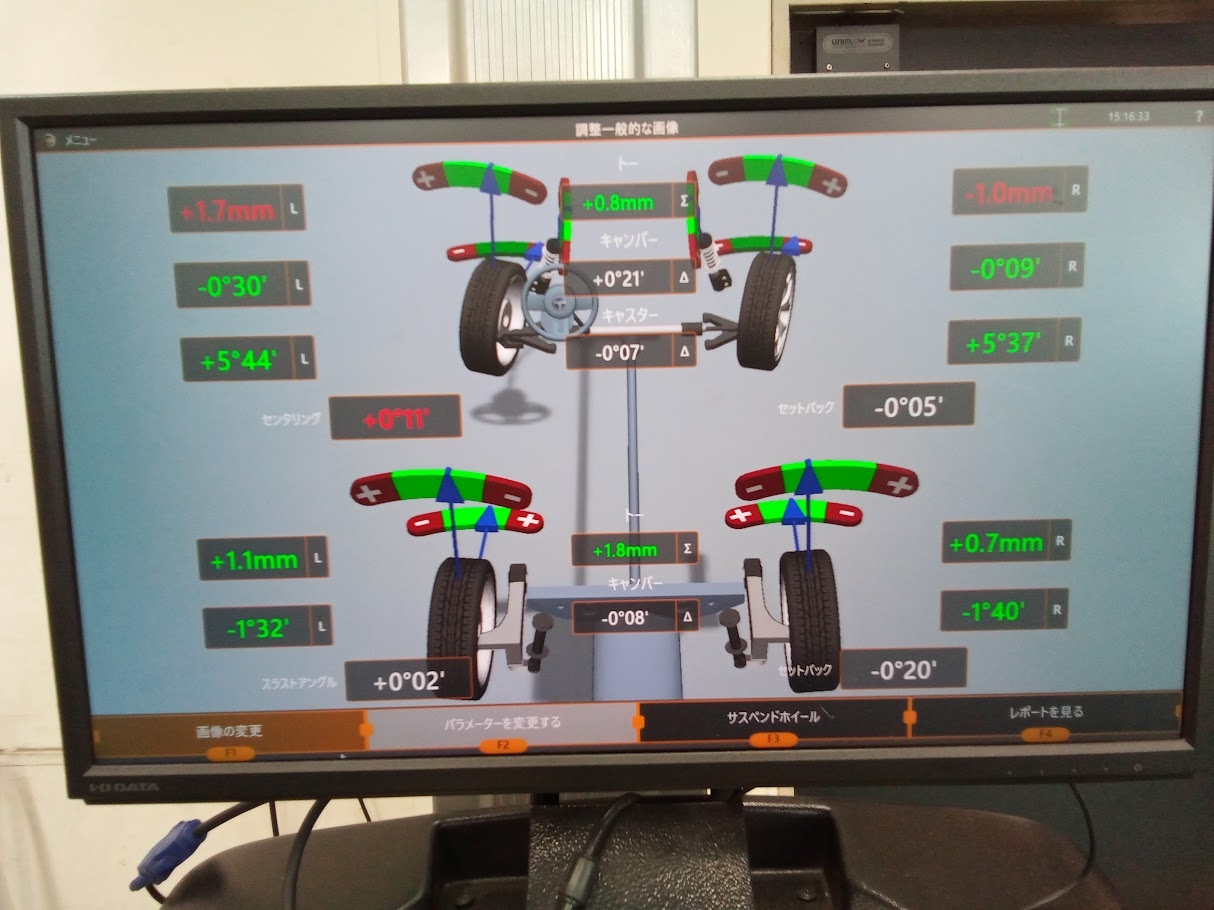 調整後は左右の数値のバラツキが無くなり、ハンドルセンターズレも解消されました!