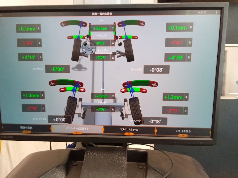 調整後は左右の数値のバラツキが無くなり、ハンドルセンターズレも解消されました!