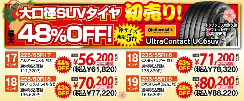 1月15日までの期間限定でタイヤを4本購入頂いた方に