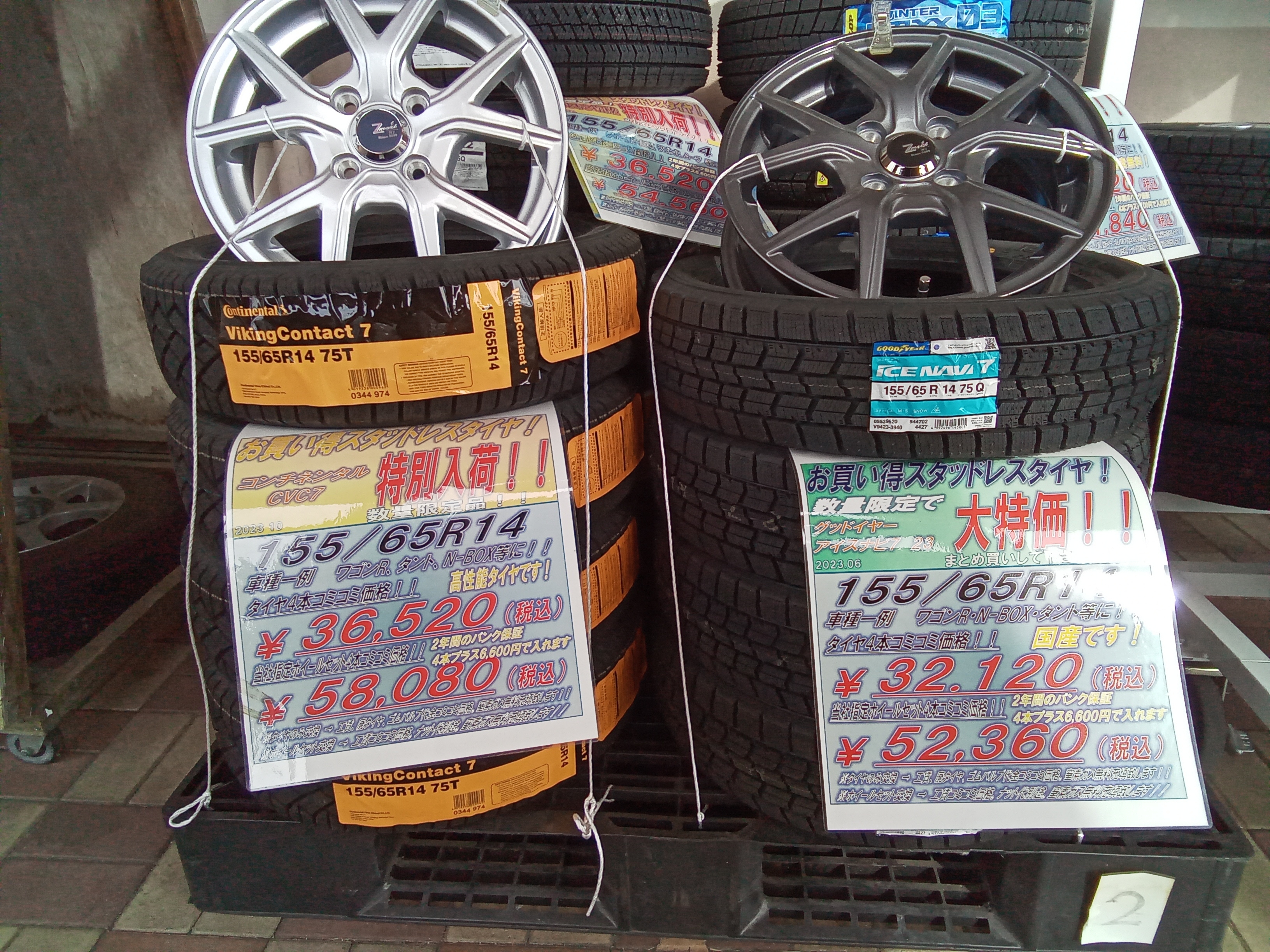 2セットではありますが組み込み済みのホイール付きスタッドレスタイヤもございます!