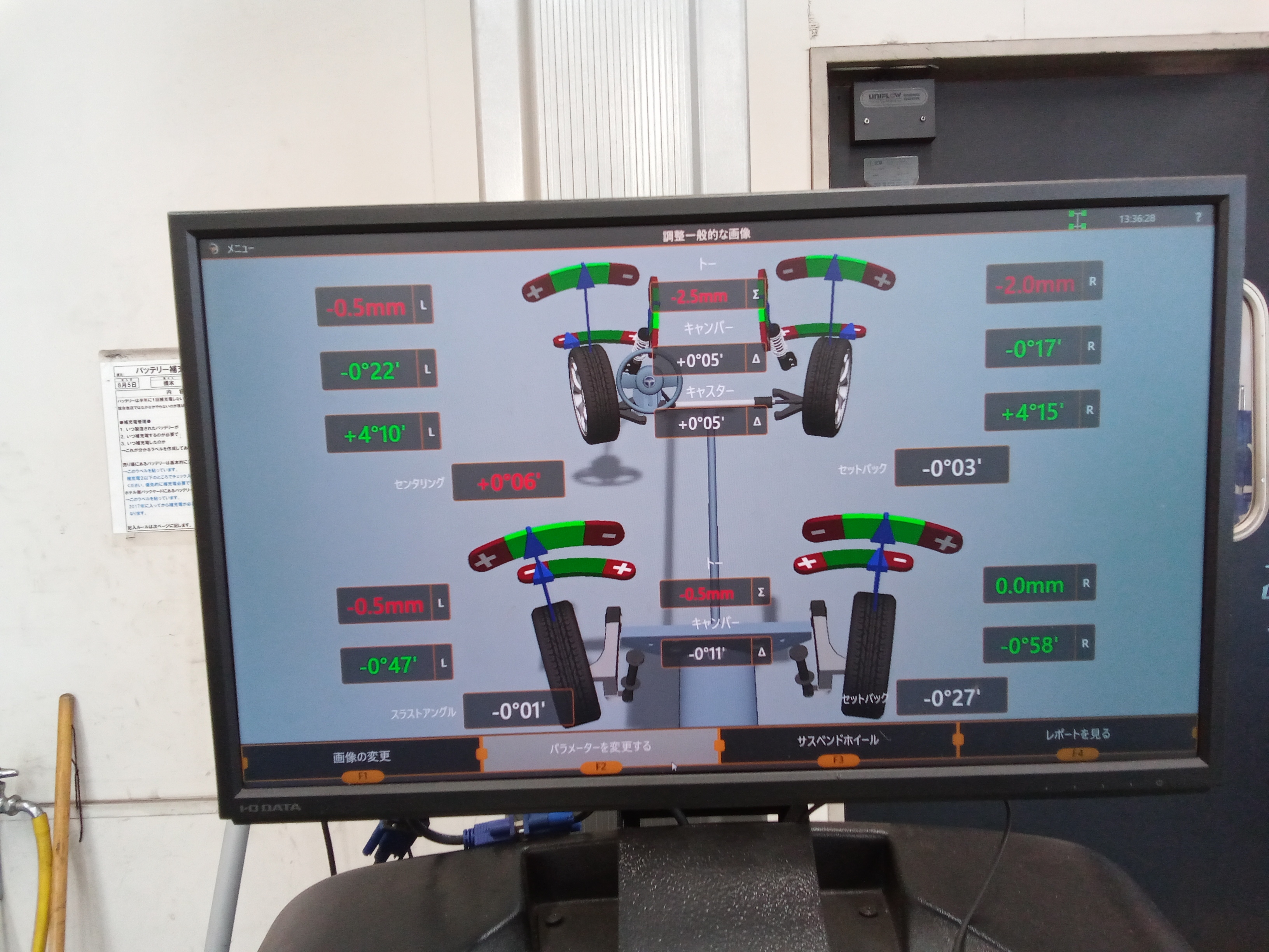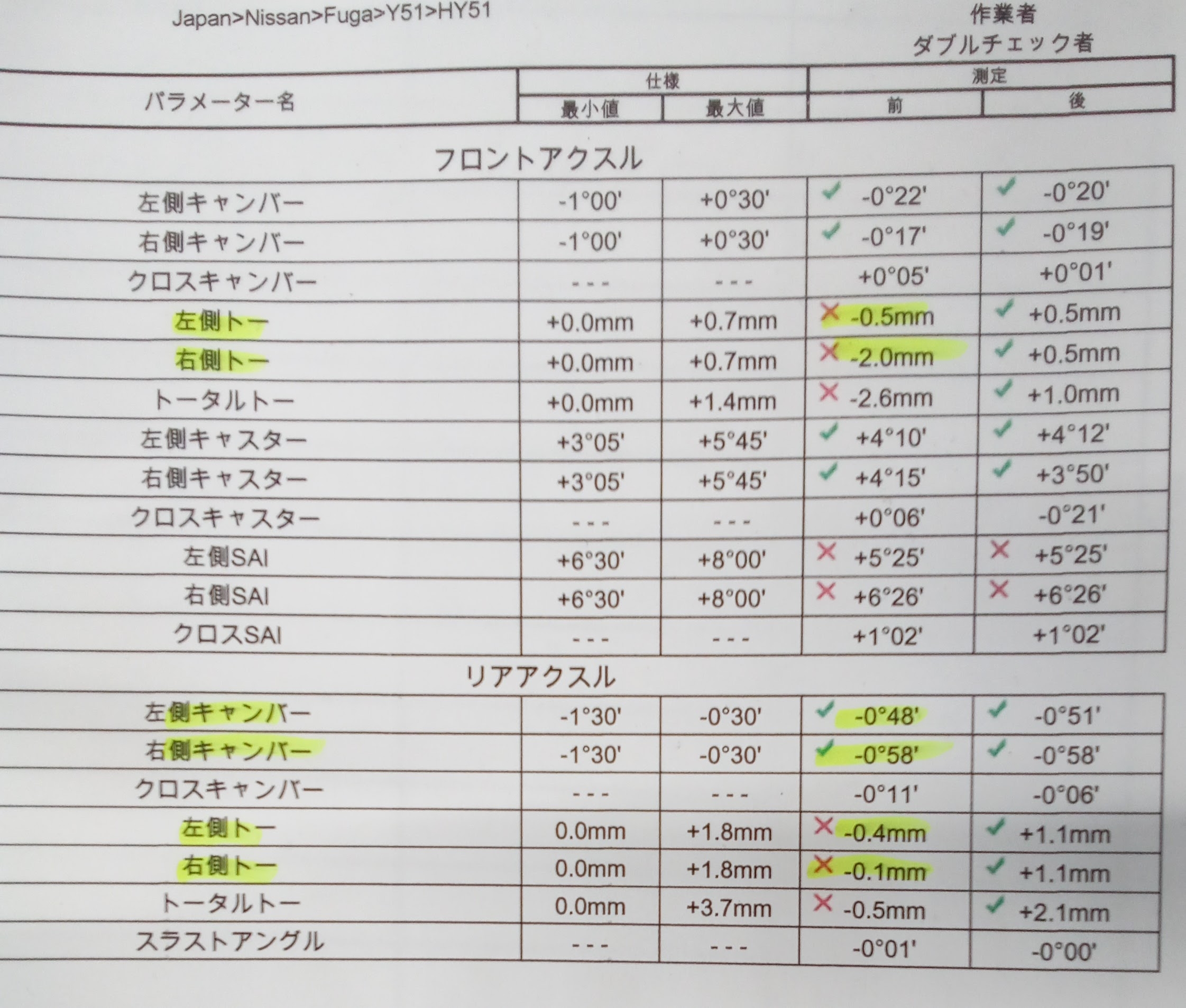先日、日産フーガのタイヤ交換&アライメント調整を行いました。