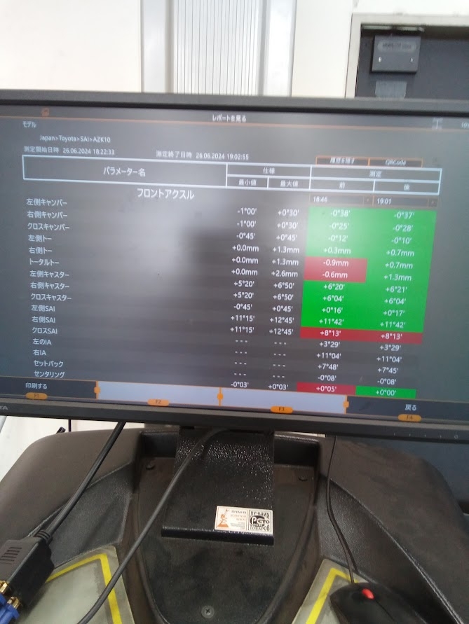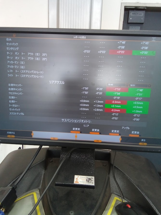 IMG_20240627_100626_409.jpgIMG_20240627_100639_465.jpgフロント、リア共に基準値から比べタイヤが外側を向いてしまっていました(ToT)/~~~