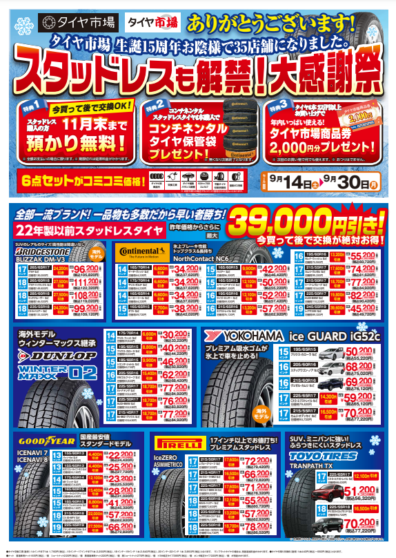 スタッドレスも解禁! 大感謝祭 実施中!!