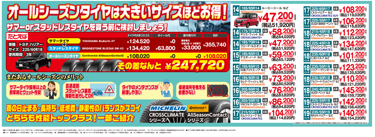 オールシーズンタイヤ も サマータイヤも まだまだ安い!